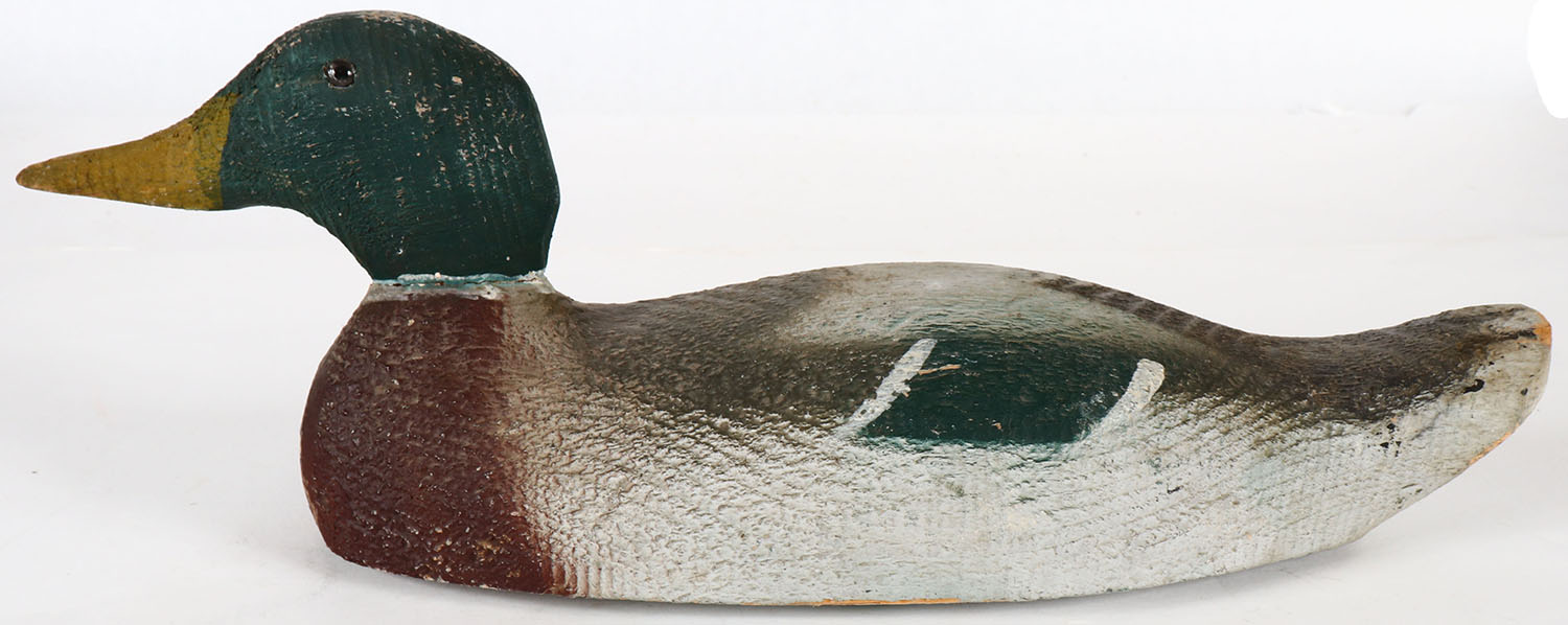 Mallard Drake by a Victor factory, glass eyes, solid wood, original paint, structurally excellent. Grade: Excellent - Value: 10 to 30