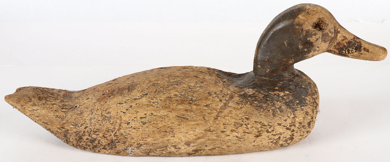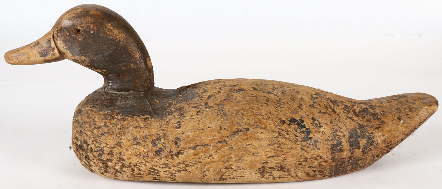 Pintail Drake by unknown maker, glass eyes are missing, solid wood, repaint. Grade: Good + - Value: 2 to 10