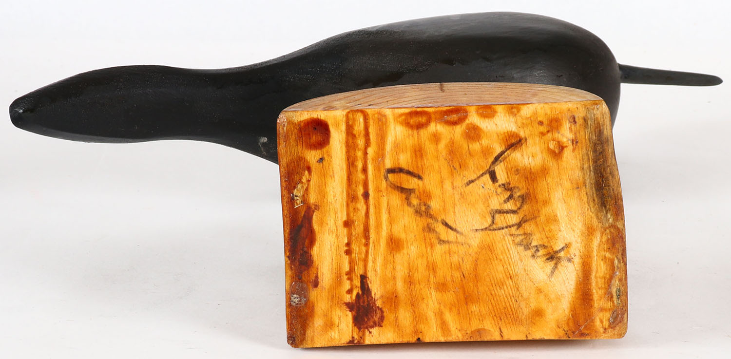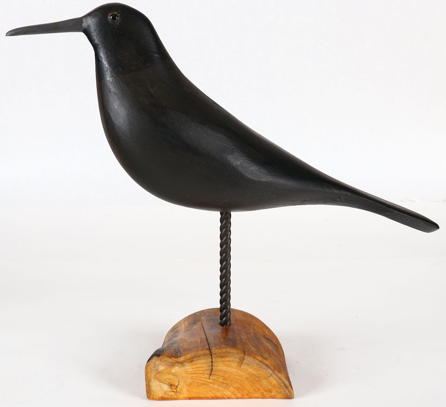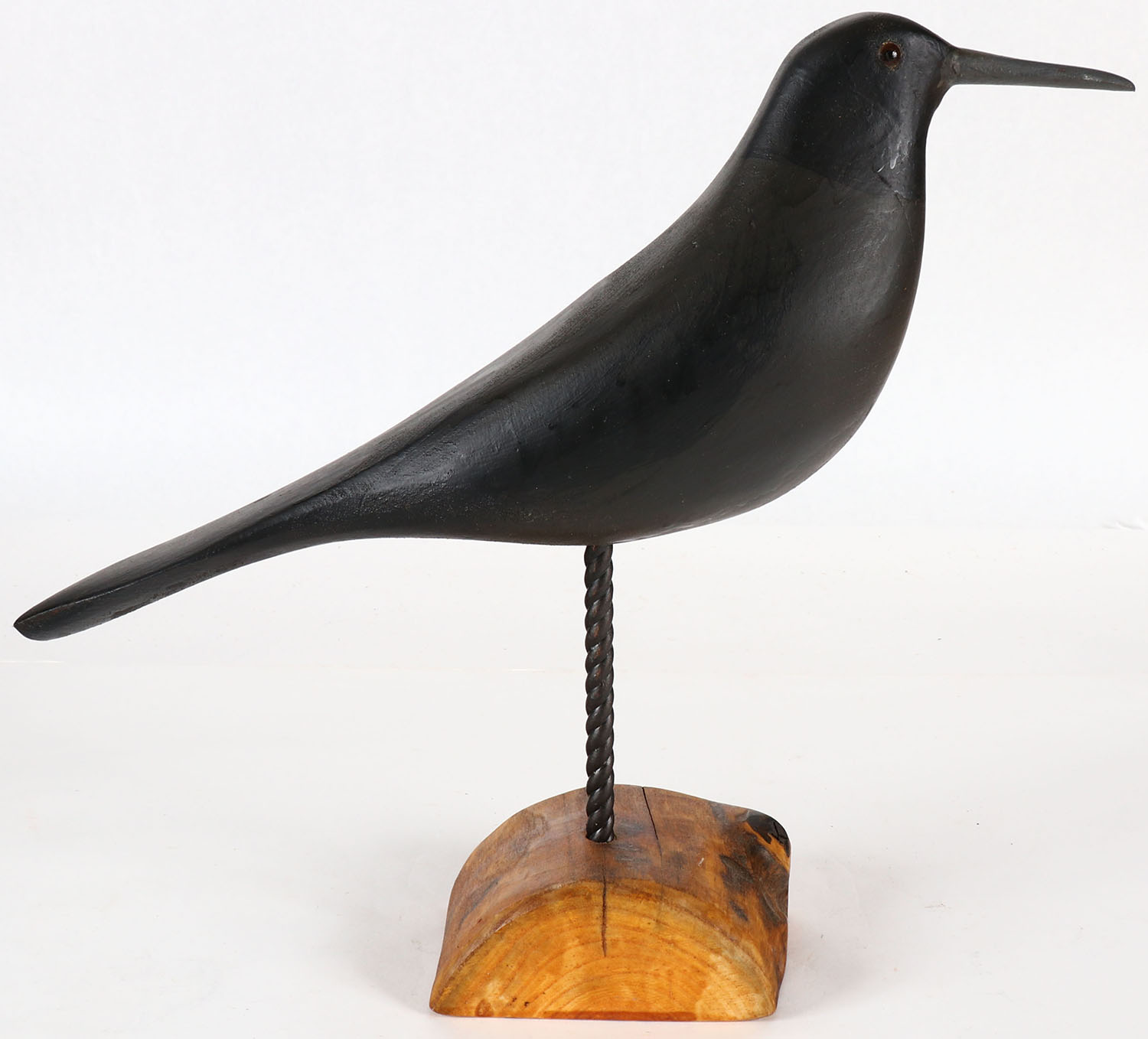 Crow by Jim Slack, Pekin, IL, GE, solid wood, mint original paint, on stand, signed on bottom, 13'' tall. Grade: MINT - Value: 20 to 60