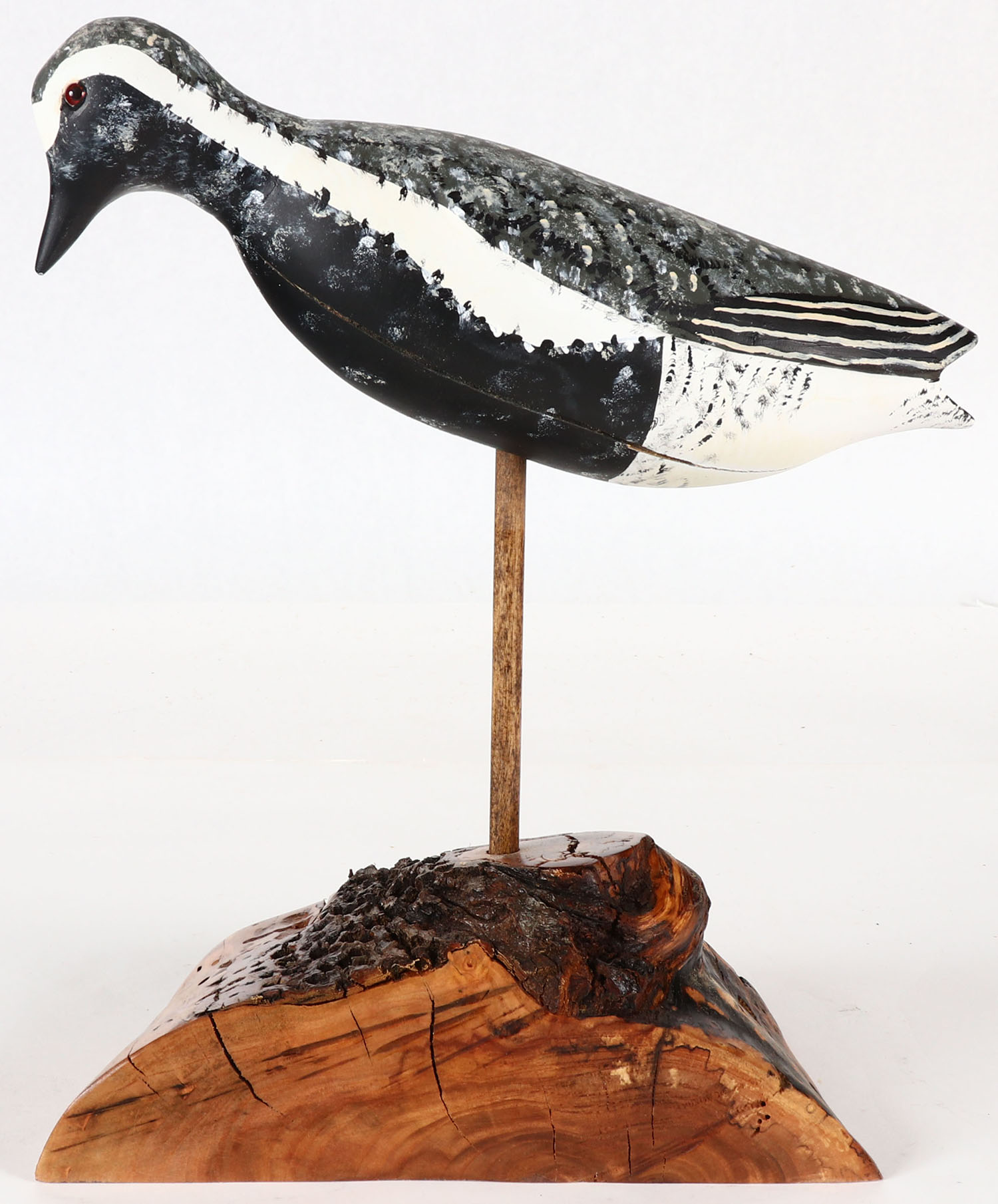 Black Belly Plover by Ed Gron??, signed on bottom, GE, solid wood, original paint, 11'' OAL. Grade: Excellent - Value: 20 to 60