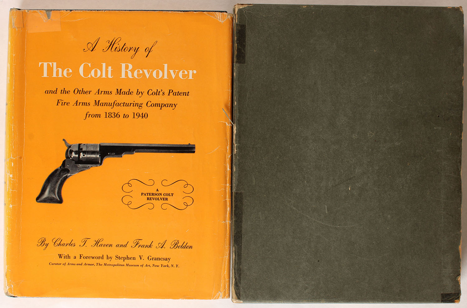 A History of the Colt Revolver and the Other Arms Made by Colt's Patent Fire Arms Manufacturing Company from 1836 to 1940 by Charles T. Haven, 8 1/2'' x 11''. 711 pages, pages clean, B&W photos, binding tight, hardcover is very good and dustjacket good, with some tape repairs, hardcover sleeve is good with some edge wear and tape repairs. Value: $60 Grade: Very Good. - Value: 20 to 60