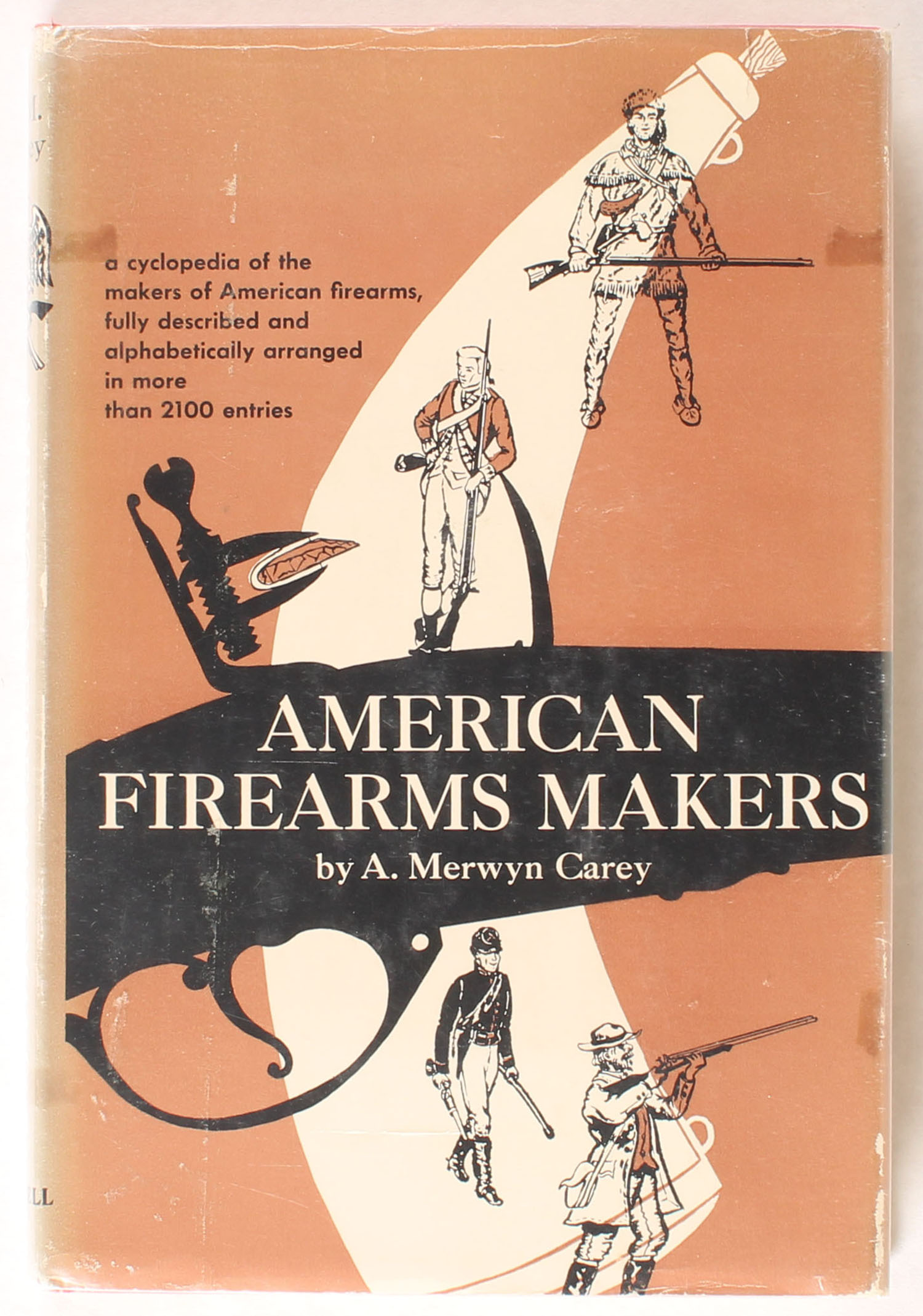 American Firearms Makers; A cyclopedia of the makers of American firearms fully described and alphabetically arranged in more than 2100 entries 1953 by Carey, A. Merwyn, 6'' x 9''. Pages clean, binding tight, hardcover and dustjacket very good. Value: $40 Grade: Very Good ++ - Value: 2 to 40