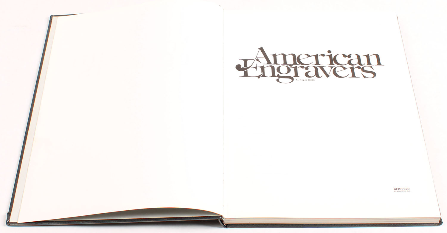 American Engravers by C Roger Bleile first edition 1980. 9 1/2'' x 12'', 191 pages, b/w and colored photos, pages clean, binding tight, hardcover very good with light scratches, no dust jacket. Grade: Very Good. Value: $100 - Value: 20 to 100