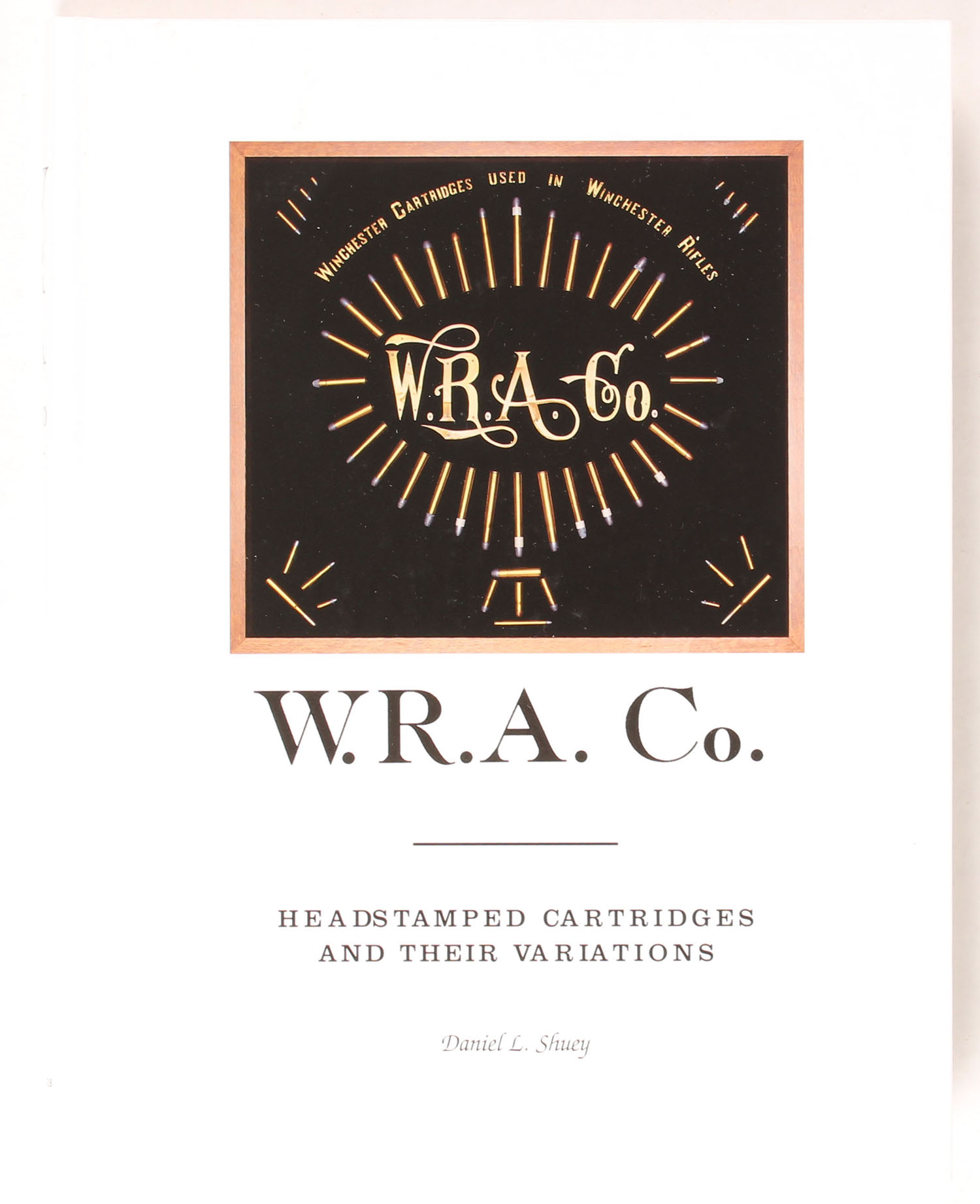 W.R.A. Co. Headstamped Cartridges and Their Variations: Volume 1 [Winchester Repeating Arms Company]1999 by Daniel L. Shuey, 8 1/2'' x 11''. 364 pages, pages clean, binding tight, hardcover mint, b/w and colored images. Value: $115 Grade: MINT - Value: 20 to 115