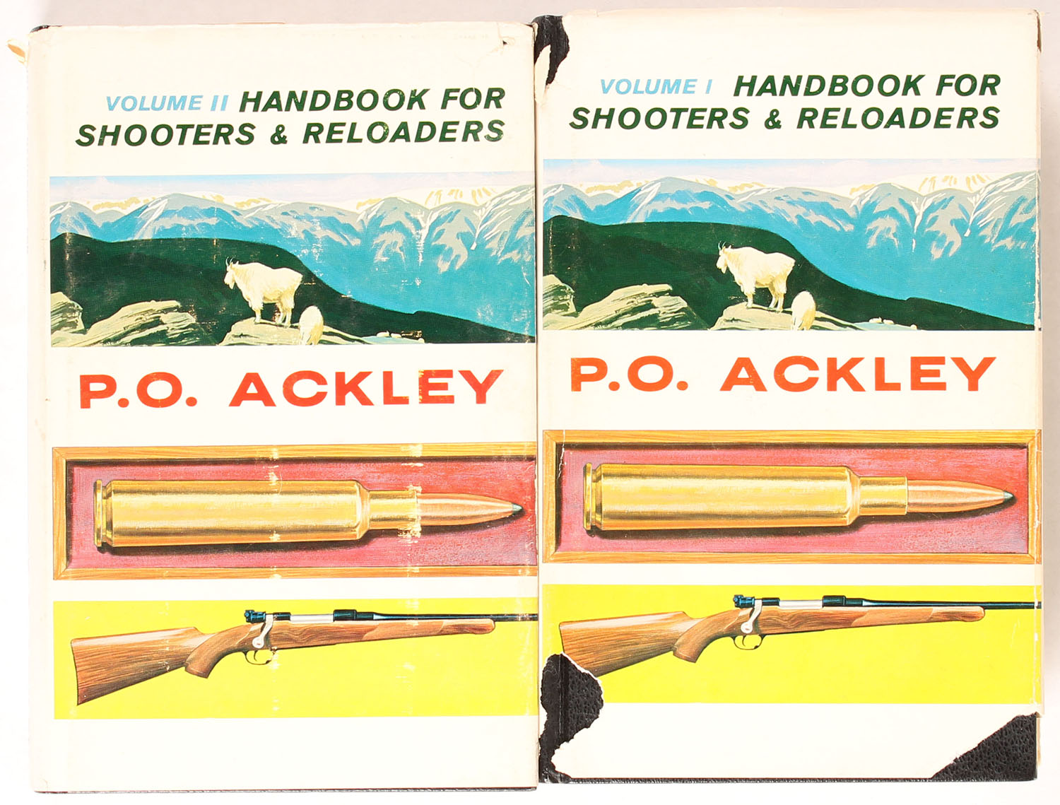 Handbook For Shooters & Revolvers Volume 1 &2 by Parker O. Ackley, 6'' x 8 1/2''. Pages clean, binding tights, hardcover very good, dustjacket good with some tears. Grade: Very Good + - Value: 20 to 100
