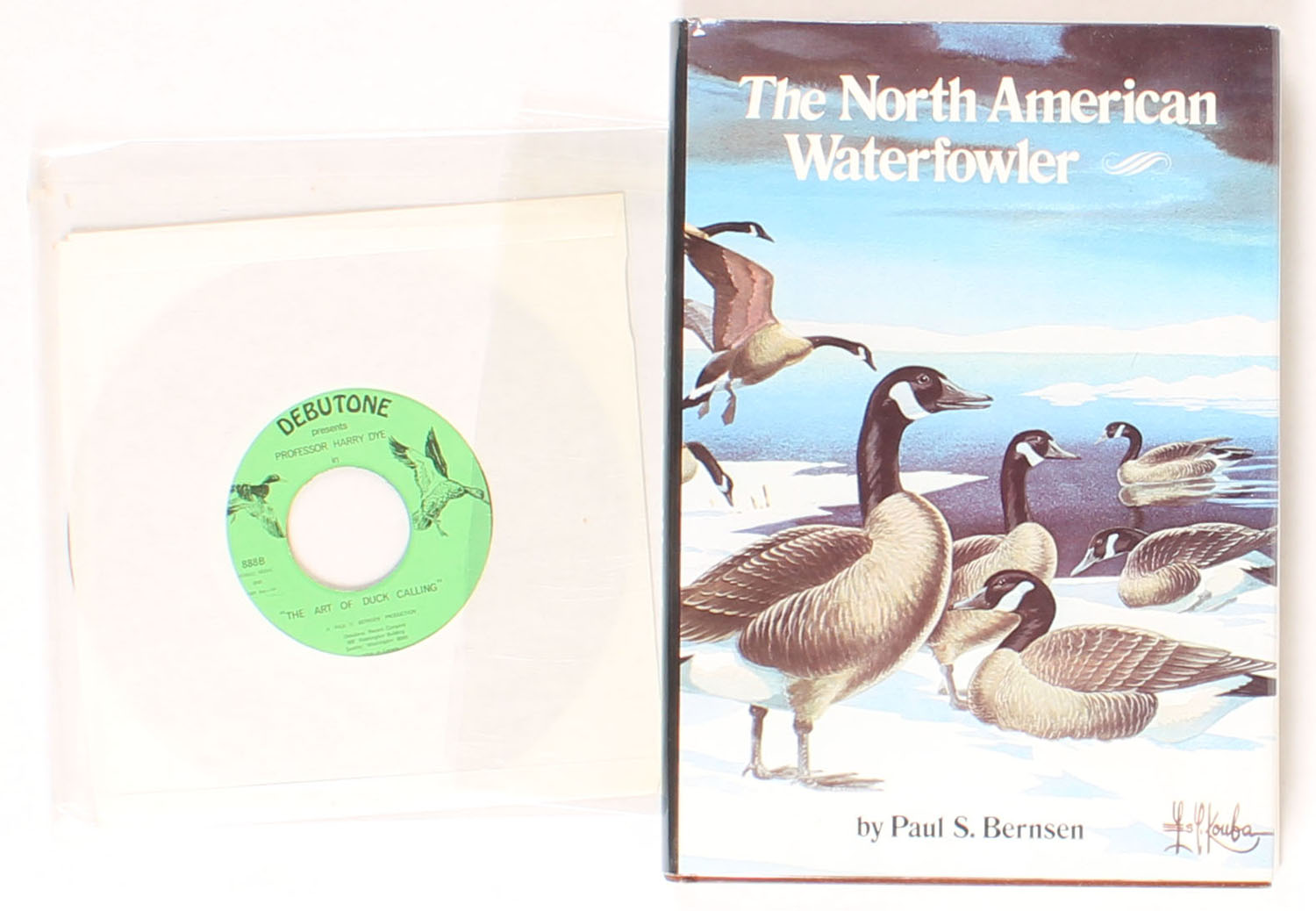 The North American Waterfowler by Paul Bernsen 1972 with The Art of Duck Calling 45 record. 7 1/2'' x 10 1/2'', 206 pages, color and b/w photos, pages clean, binding tight, hardcover mint, paper dust jacket very good. Grade: Very Good ++ - Value: 2 to 100
