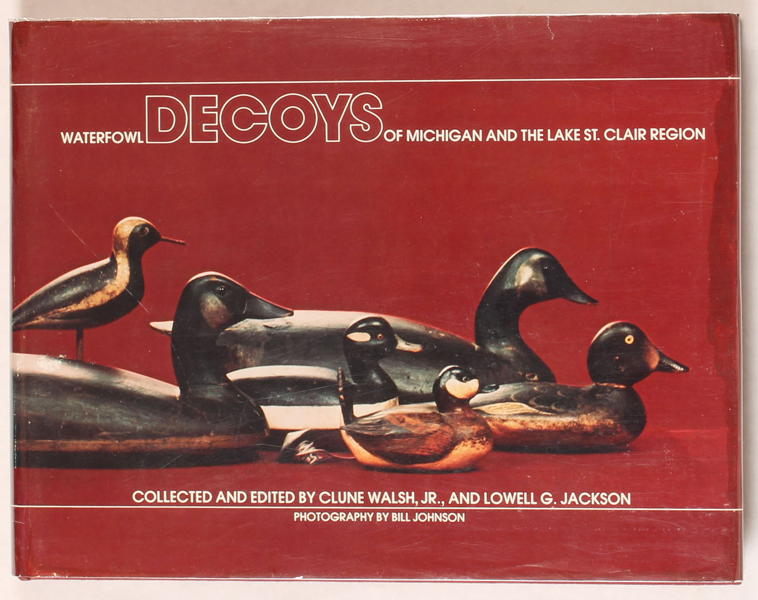Waterfowl Decoys of Michigan and the Lake St. Clair Region by Clune Walsh, Jr., Lowell G. Jackson 1983, 12'' x 9''. 175 pages, pages clean, binding tight, hardcover and dustjacket very good. Value: $250 Grade: Excellent + - Value: 10 to 250