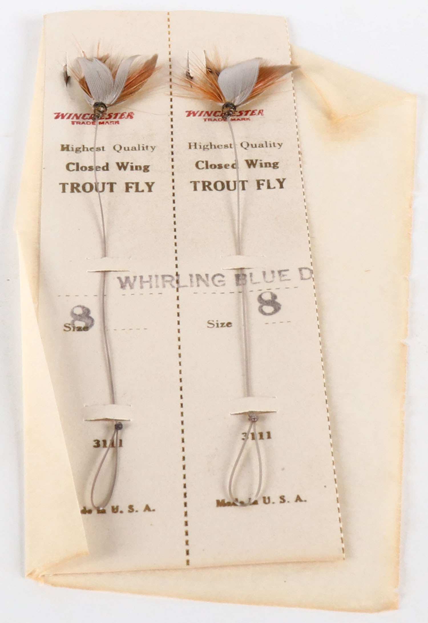Winchester Closed Wing Trout Fly on card Size 8 plus (2) Winchester Snelled Hooks in original packaging. Grade: Excellent - Value: 20 to 100