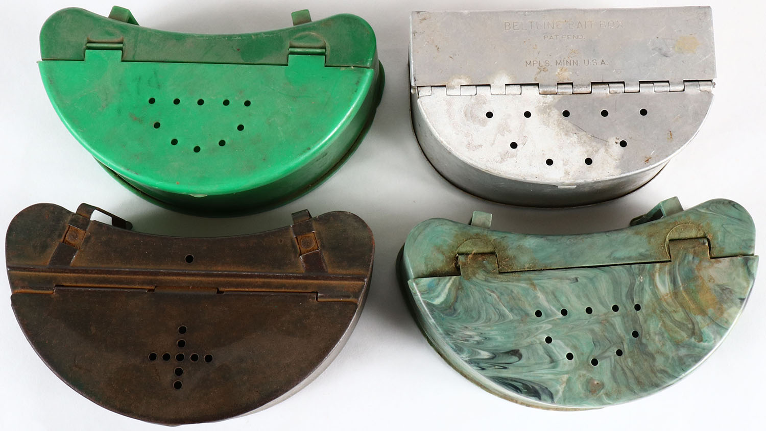 Lot of fishing metal bait boxes. Grade: Excellent - Value: 2 to 50