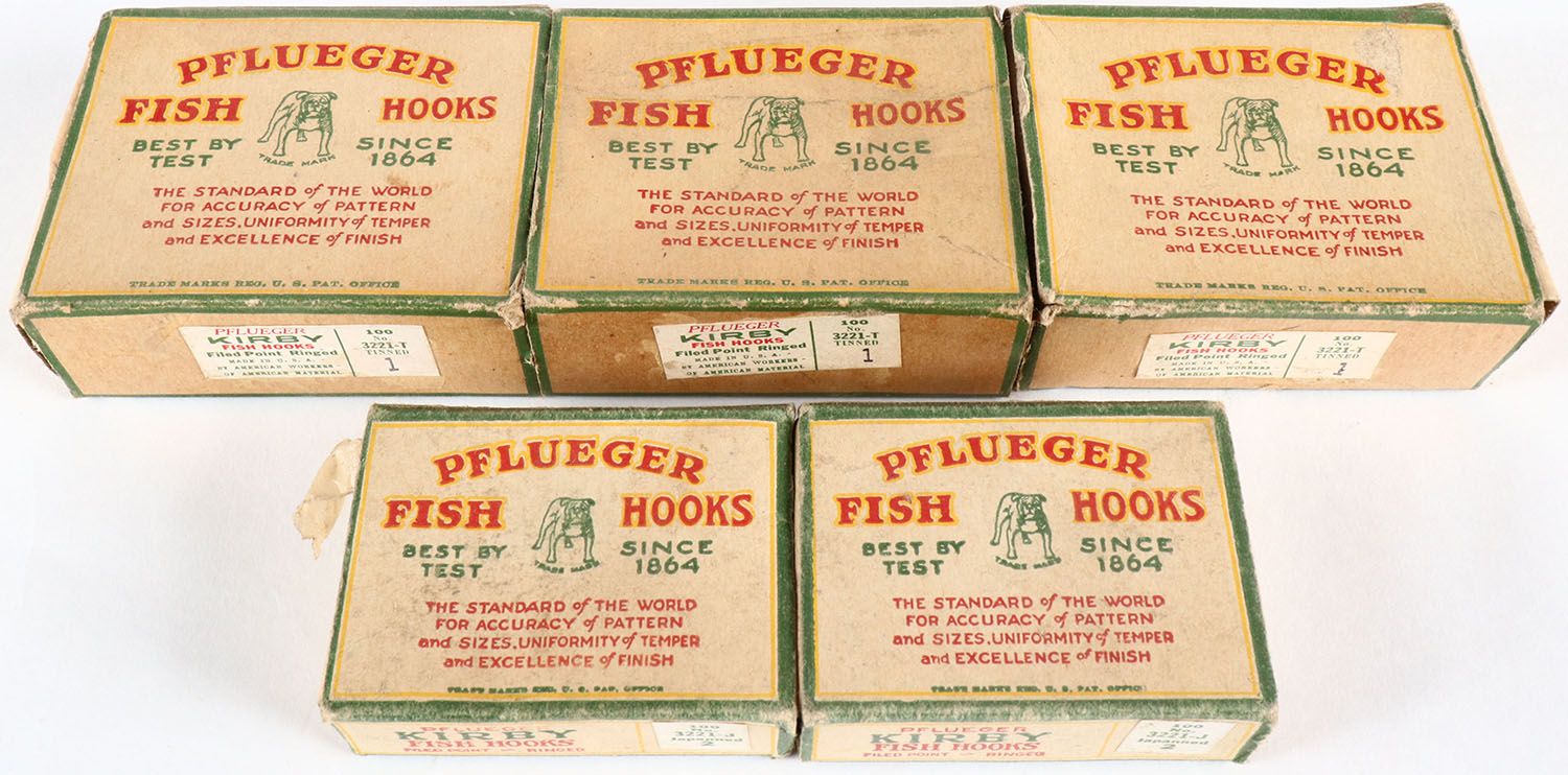| boxes of Pflueger hooks, all are full or near full. Grade: Exce...