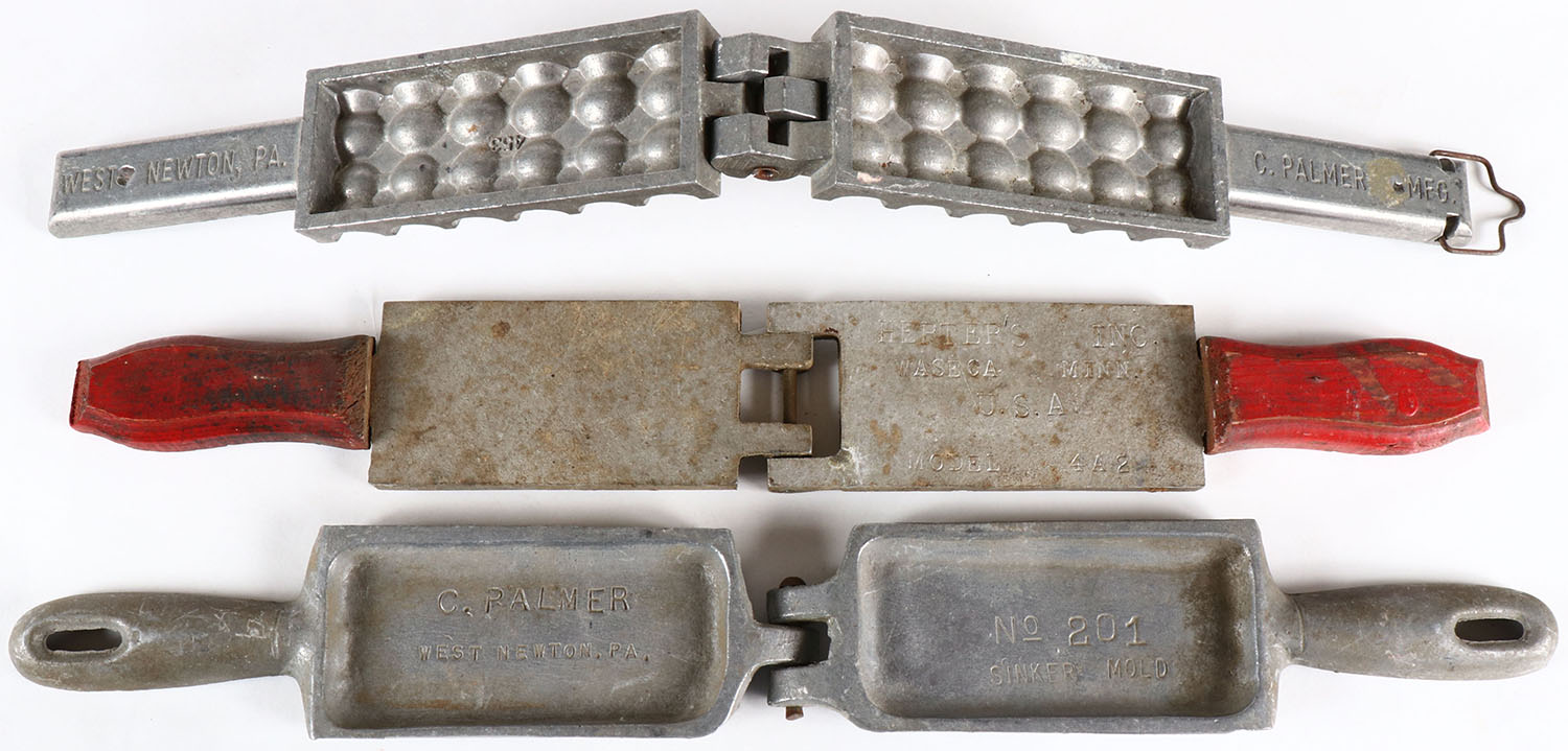 Lot of 3 fishing weight molds. Grade: Excellent - Value: 6 to 30