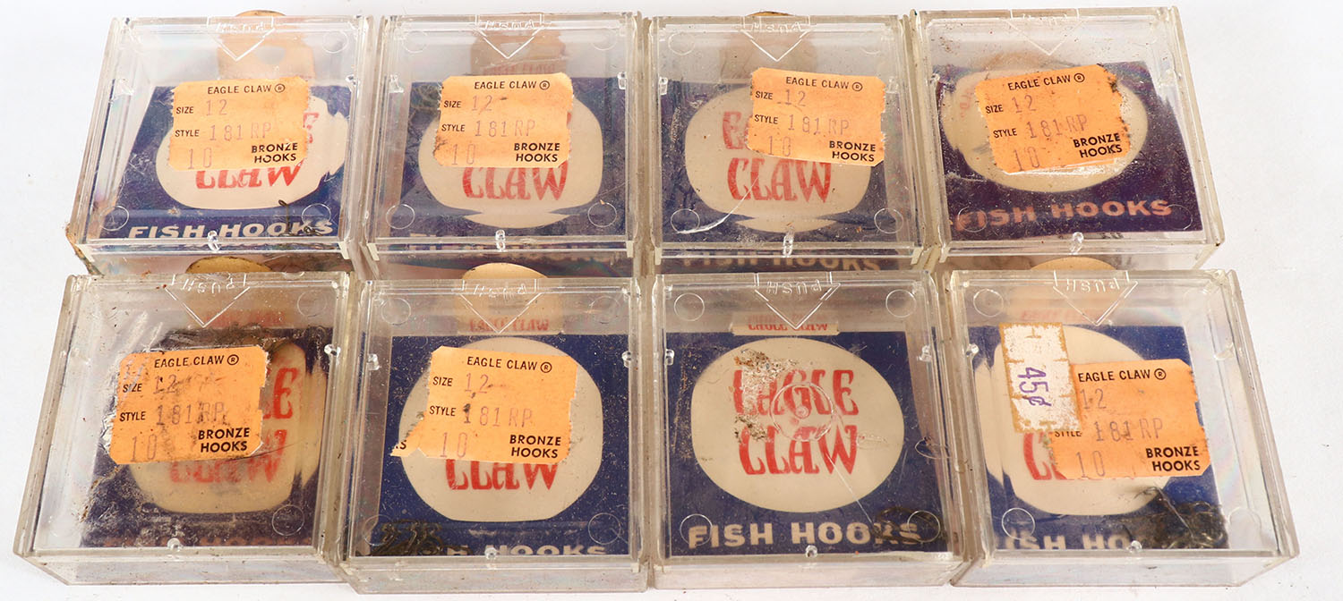 | Lot of Eagle Claw hooks in original boxes. Grade: Excellent - ...