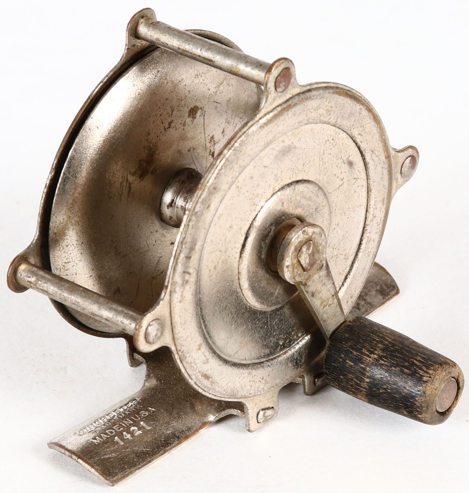 Winchester No. 1421 Fly reel, 80 Yd., reel turns nice, single buff handle. Grade: Very Good ++ - Value: 20 to 80