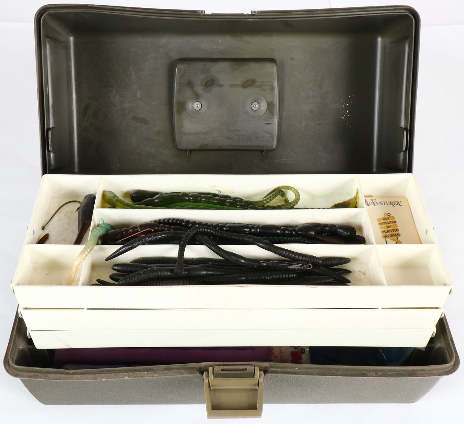 | Vlchek AdVentures No 1743 tackle box full of plastic worms. Gra...