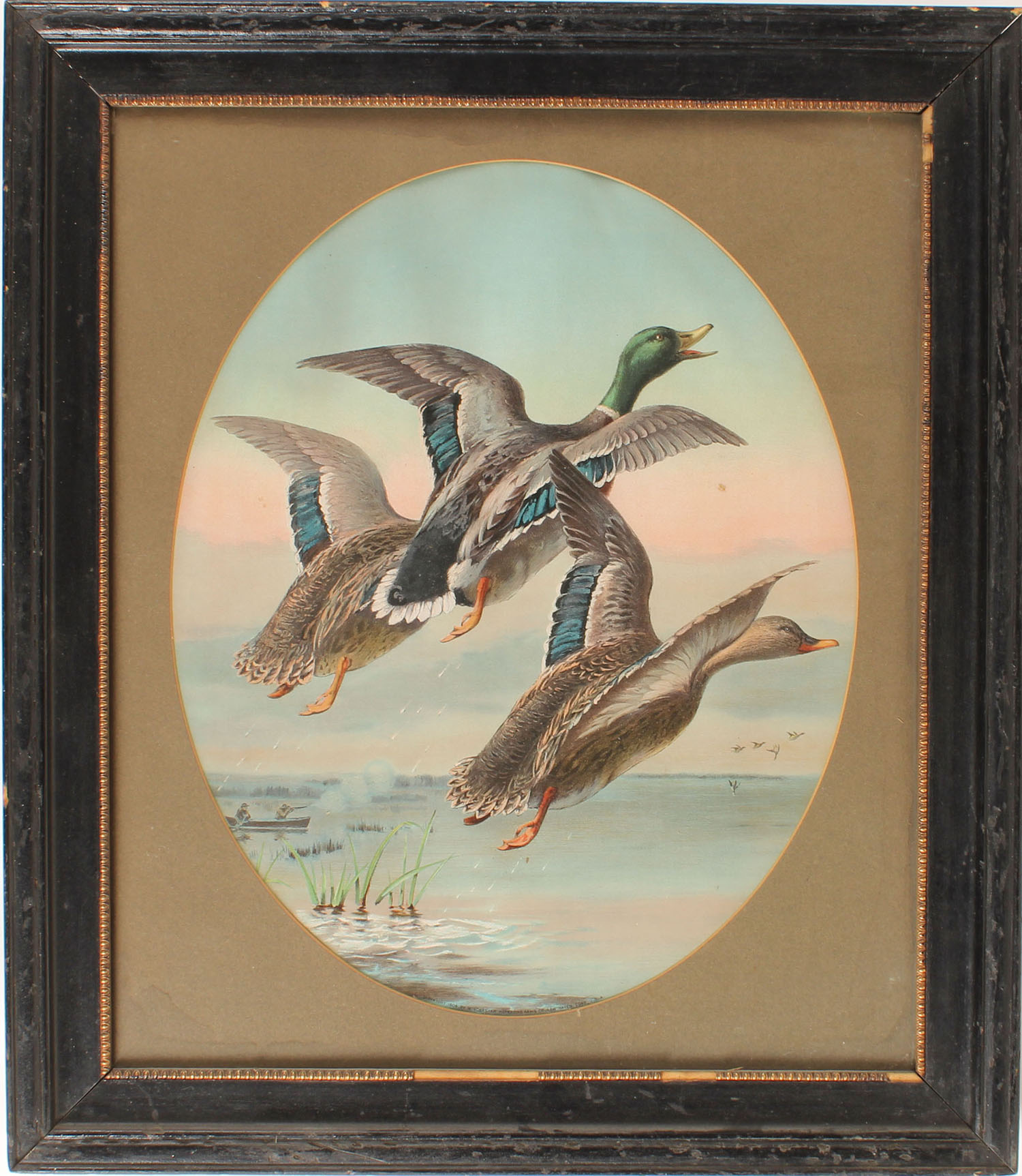 RARE Winchester THEY ARE HITTERS Poster, trimmed to oval shape, very nice colors, 15'' x 18'', circa 1904, framed Grade: Excellent - Value: 70 to 300