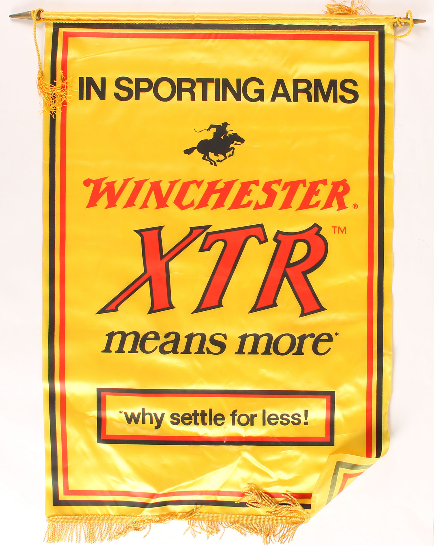 Winchester banner, ''WINCHESTER XTR MEANS MORE'', gold, red & black, all complete, 21 1/2'' x 32''. Grade: MINT - Value: 40 to 120