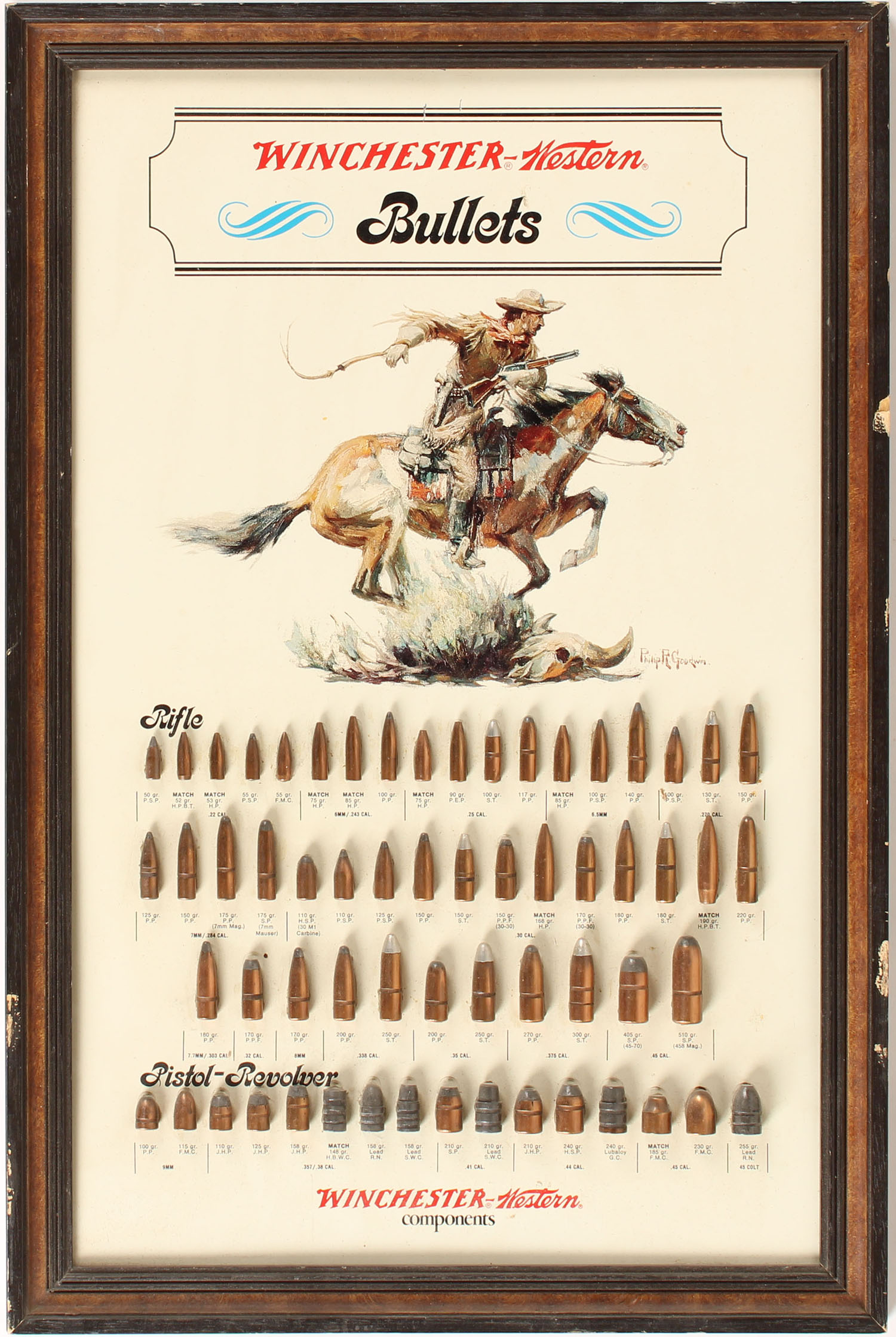 Winchester-Western Bullet Board, 13'' x 20''. Grade: Excellent ++ - Value: 40 to 200