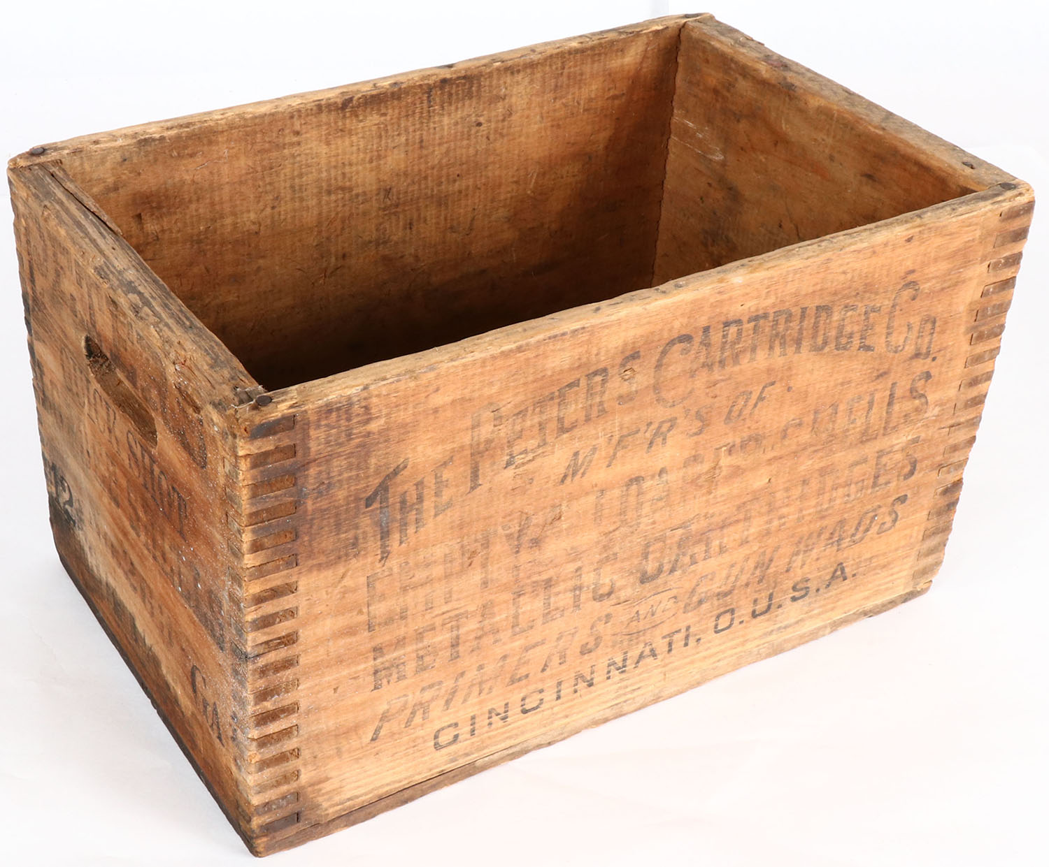 EARLY Peters wood shipping crate, QUICK SHOT, 12 ga., tongue and groove construction, black print has fading, crate has age soiling, Grade: Very Good + - Value: 50 to 200