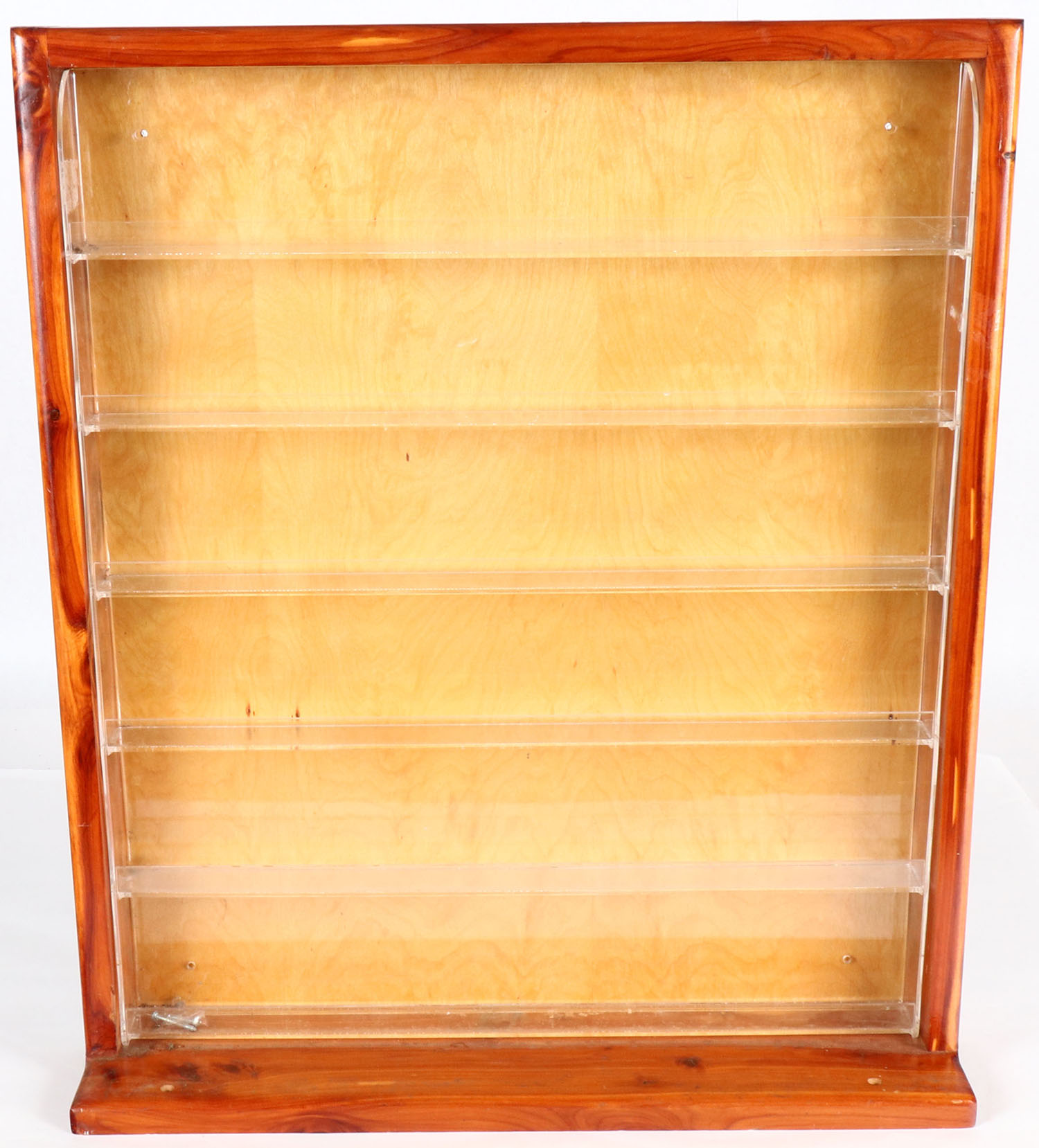 Large .22 shell box collection display case/shelf. Exterior made of wood, interior plastic shelves with a front lip. 26'' x 22'' x 5''. Can be hung on the wall or will free stand on the wider foot base. All very solid & nicely built. Grade: Excellent - Value: 40 to 200