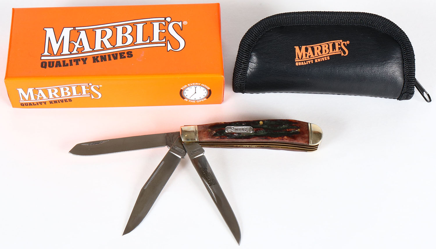 Marbles knife, folding knife, multi blade, 3'' longest blade, brand new, in box with sheath, very nice Grade: Excellent ++ - Value: 16 to 50