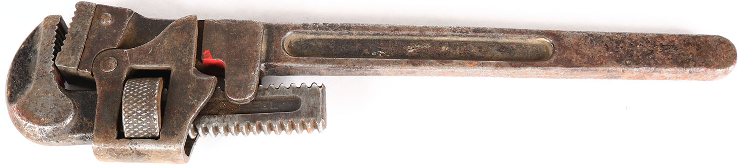 Winchester Wrench pipe, 14'', #1033, solid but has age soiling. Grade: Very Good + - Value: 10 to 90