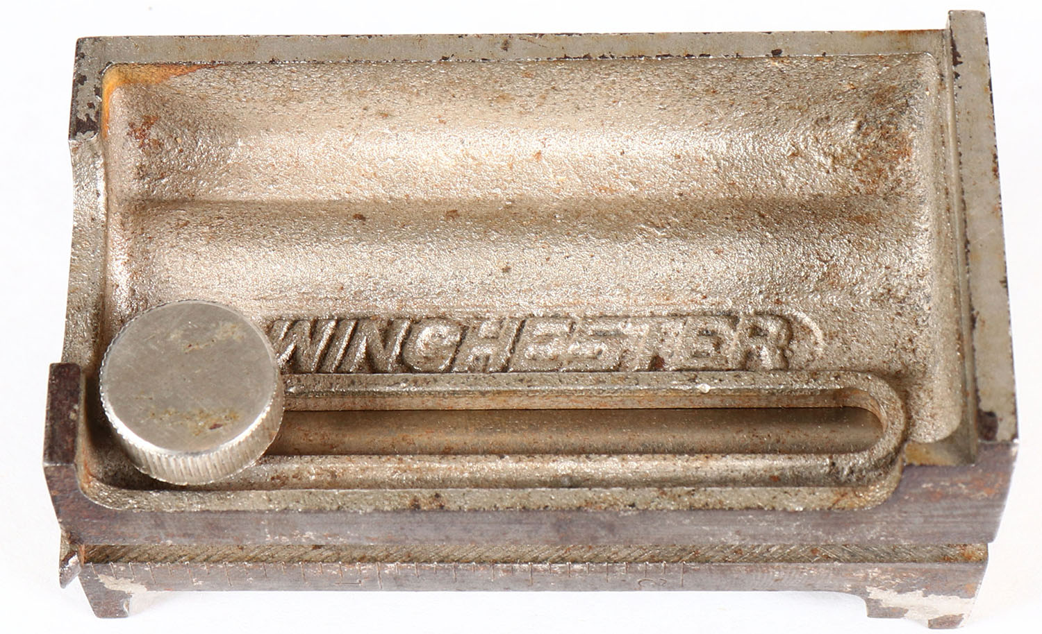 RARE! Winchester metal gauge double arm, well marked, has rust. Grade: Very Good ++ - Value: 20 to 60