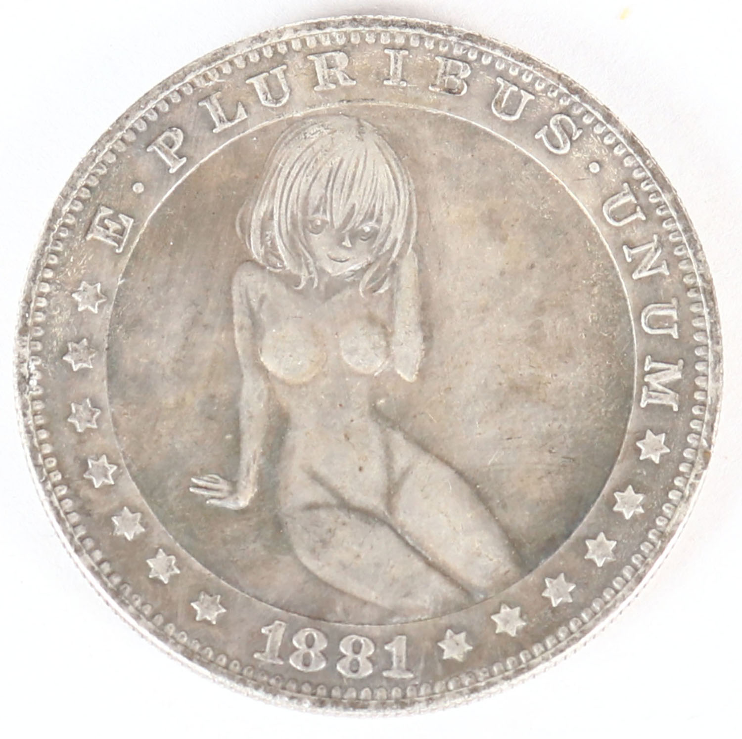 RARE! 1881 nude silver dollar coin with eagle on back. Grade: Excellent - Value: 100 to 400