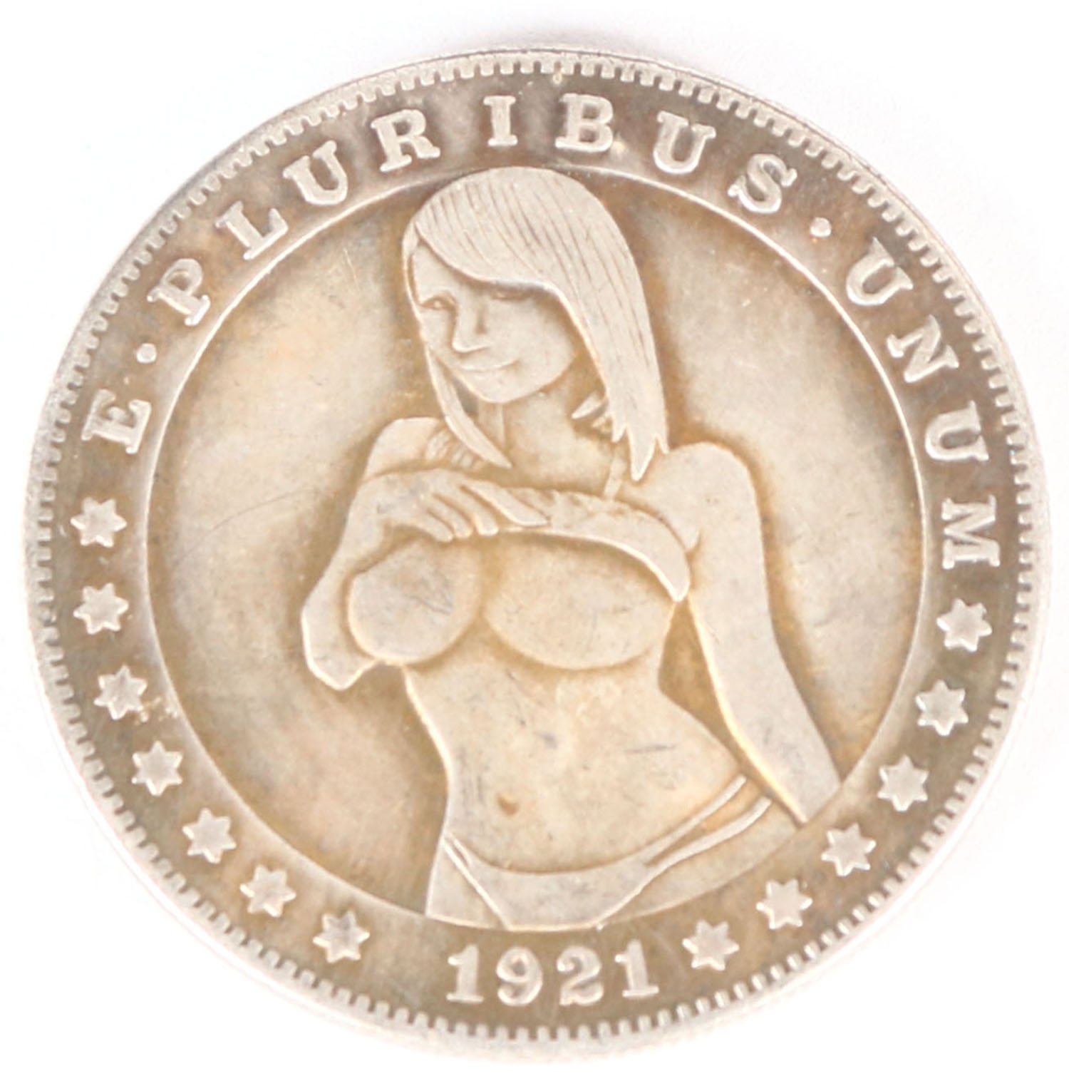 RARE! 1921 nude silver dollar coin with eagle on back. Grade: Excellent - Value: 100 to 400