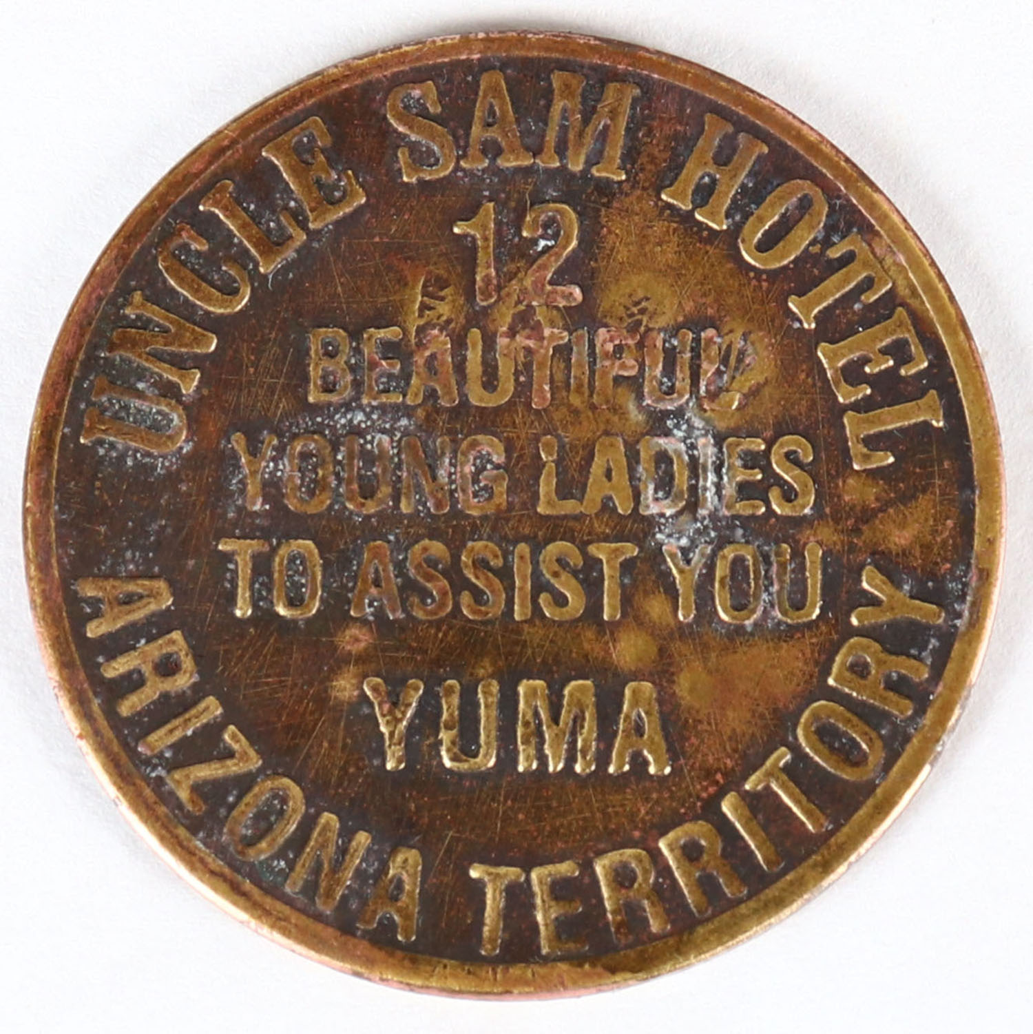Brothel Token Arizona territory dated 1885. Grade: Very Good - Value: 20 to 40