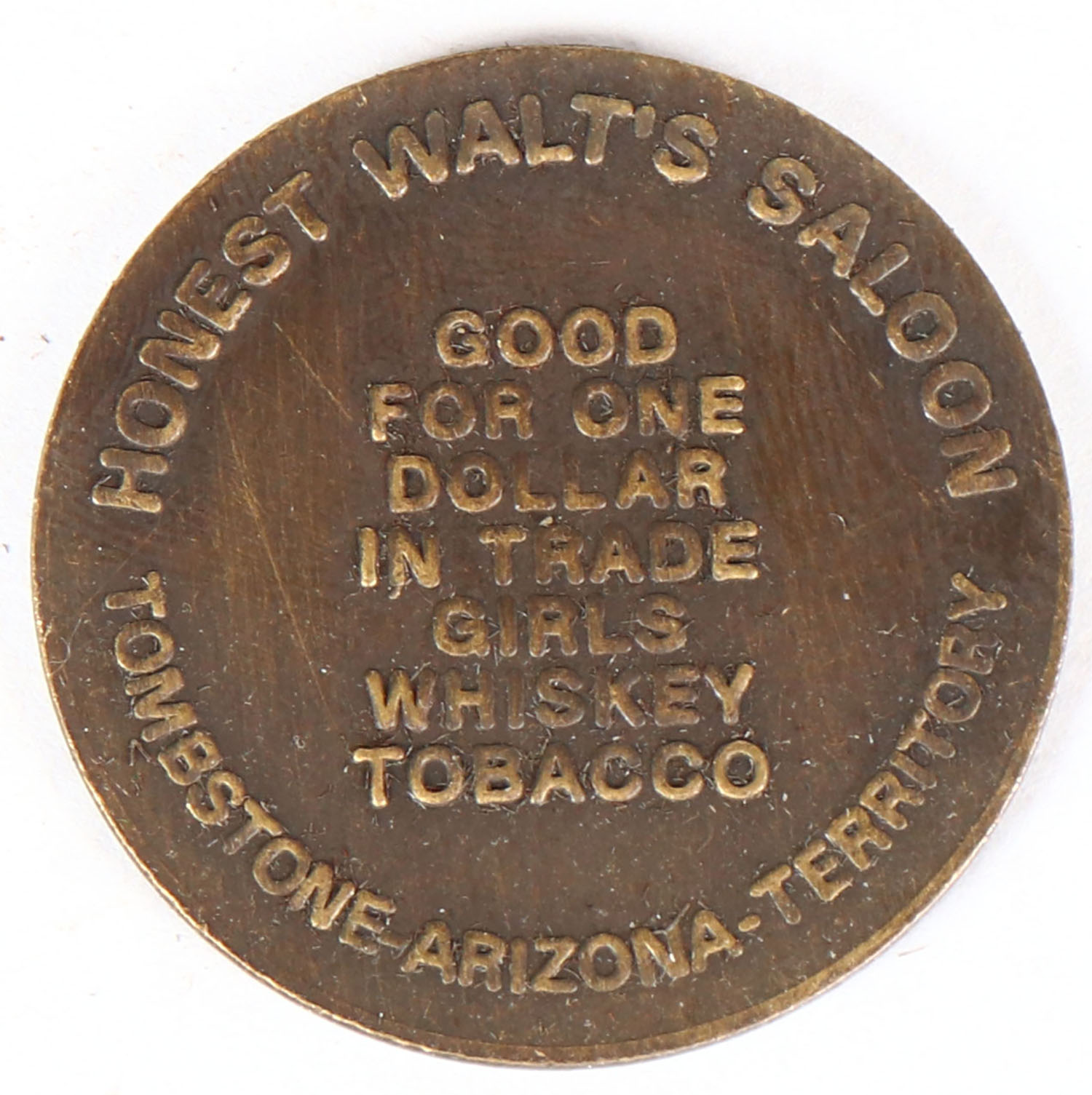 Double sided Brothel Token. ''Honest Walts Saloon''. Grade: Excellent - Value: 10 to 40