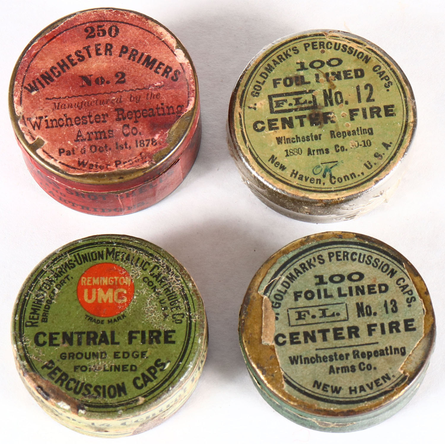 Lot of 4, primers/percussion caps, Winchester all full, all have age soiling. Grade: Very Good ++ - Value: 16 to 60