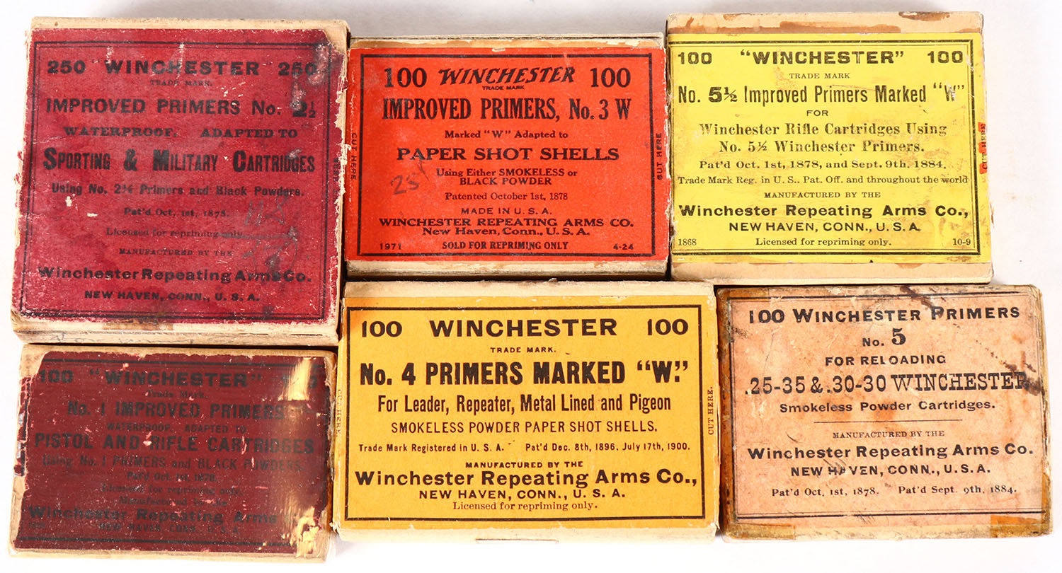 Lot of 6 antique primer boxes all partial. Grade: Very good ++ - Value: 6 to 50