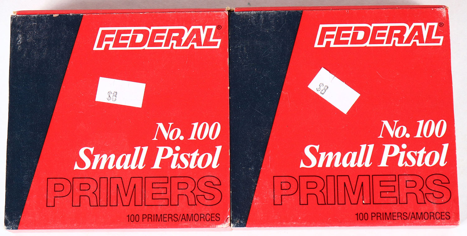 Lot of 2 Federal primer boxes, all full. Grade: Excellent - Value: 2 to 20