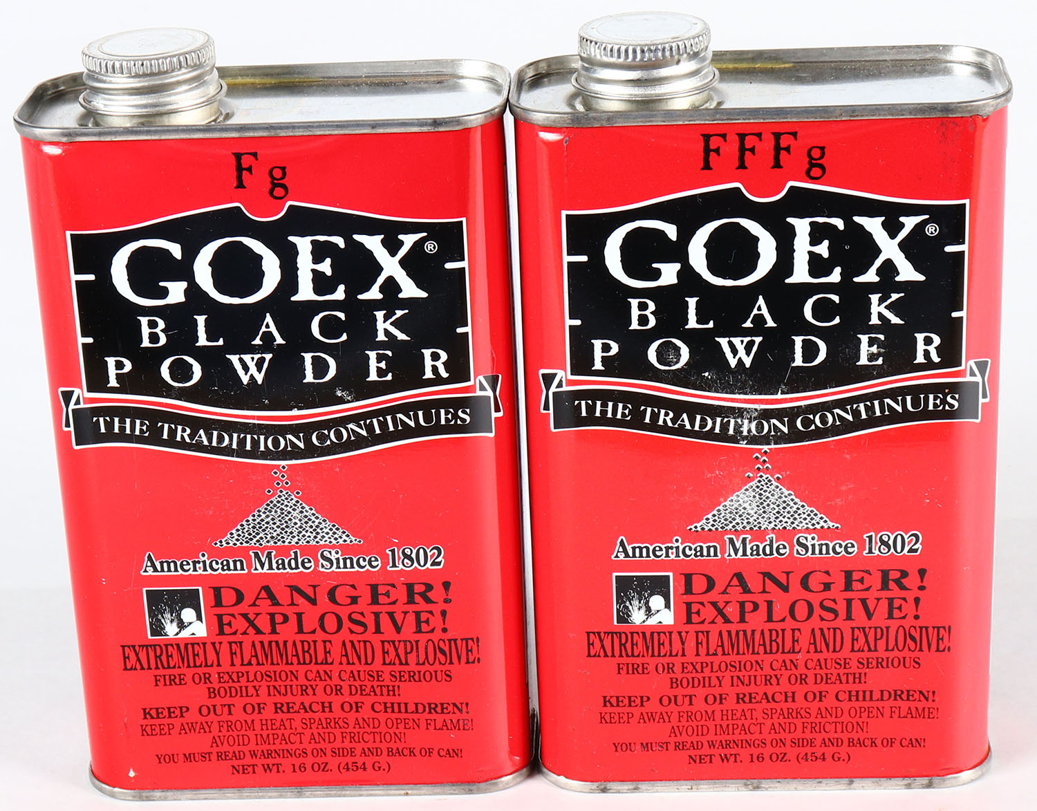 Lot of 2 Goex powder cans, both FULL. Grade: Excellent ++ - Value: 20 to 100