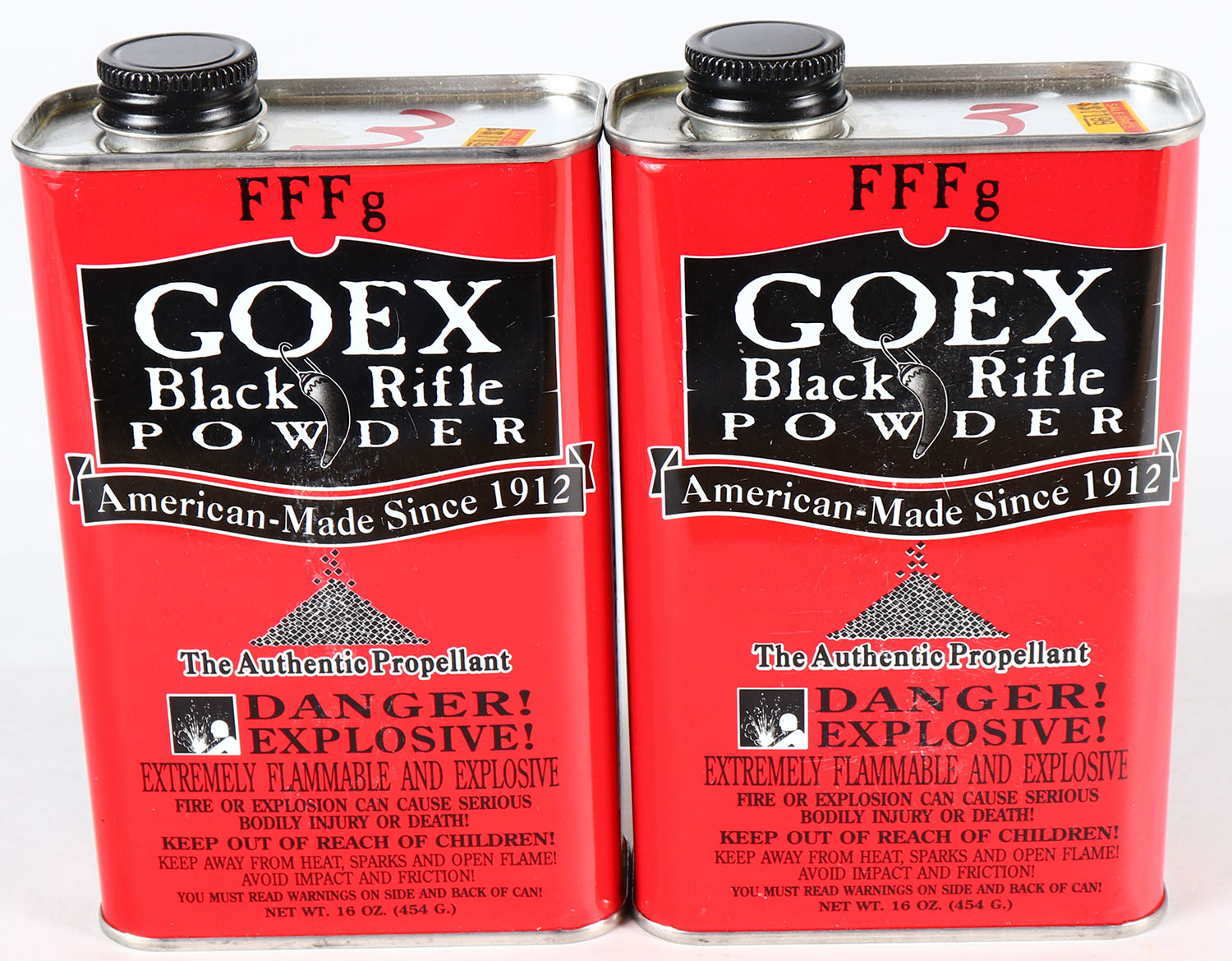 Lot of 2 Goex powder cans, both FULL. Grade: Excellent ++ - Value: 20 to 100