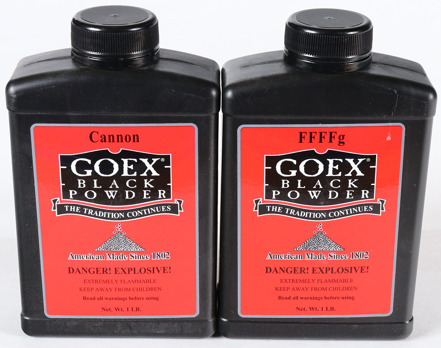 Lot of 2 Goex powder cans, Cannon and FFFFg both FULL. Grade: Excellent ++ - Value: 10 to 50