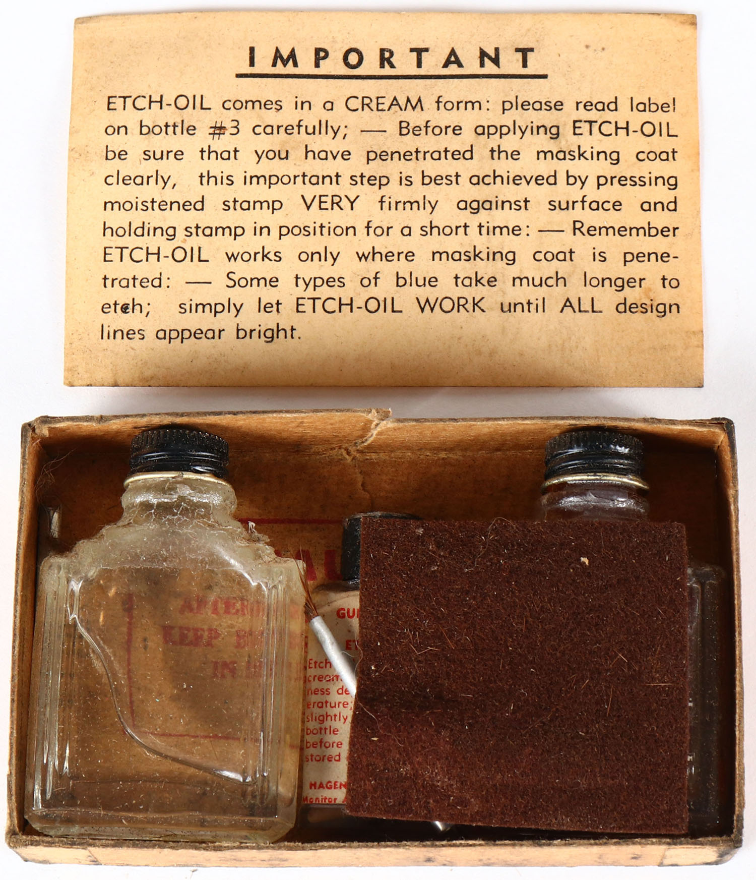 Early gun oil, Hagen The ultimate in Gun decoration, in original cardboard box, 3 FULL jars. Grade: Very Good + - Value: 20 to 60