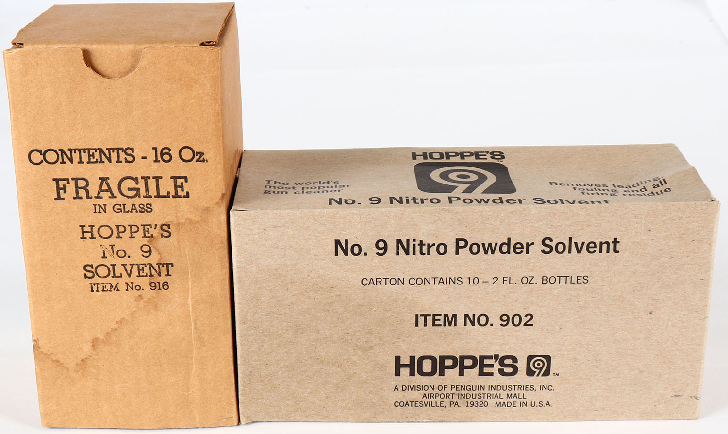 Lot of 2 hoppes solvents, 1 small jar and 1 large jar, in original boxes. Grade: Excellent - Value: 4 to 40