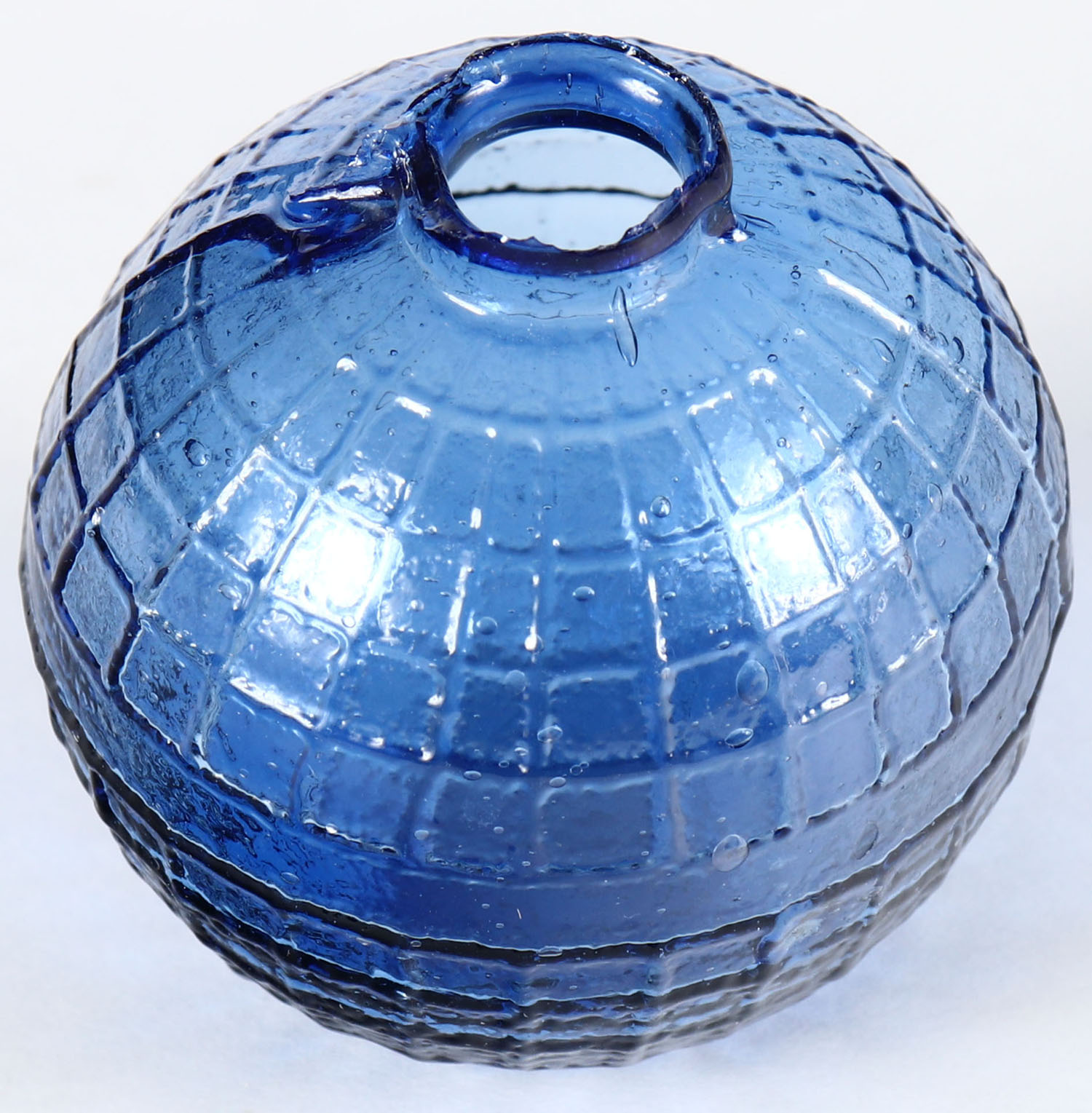 RARE! Blue Glass Target Ball, Small 2'', design fades to smooth, 2 piece, medium neck, wonderful condition. Grade: Excellent - Value: 100 to 500