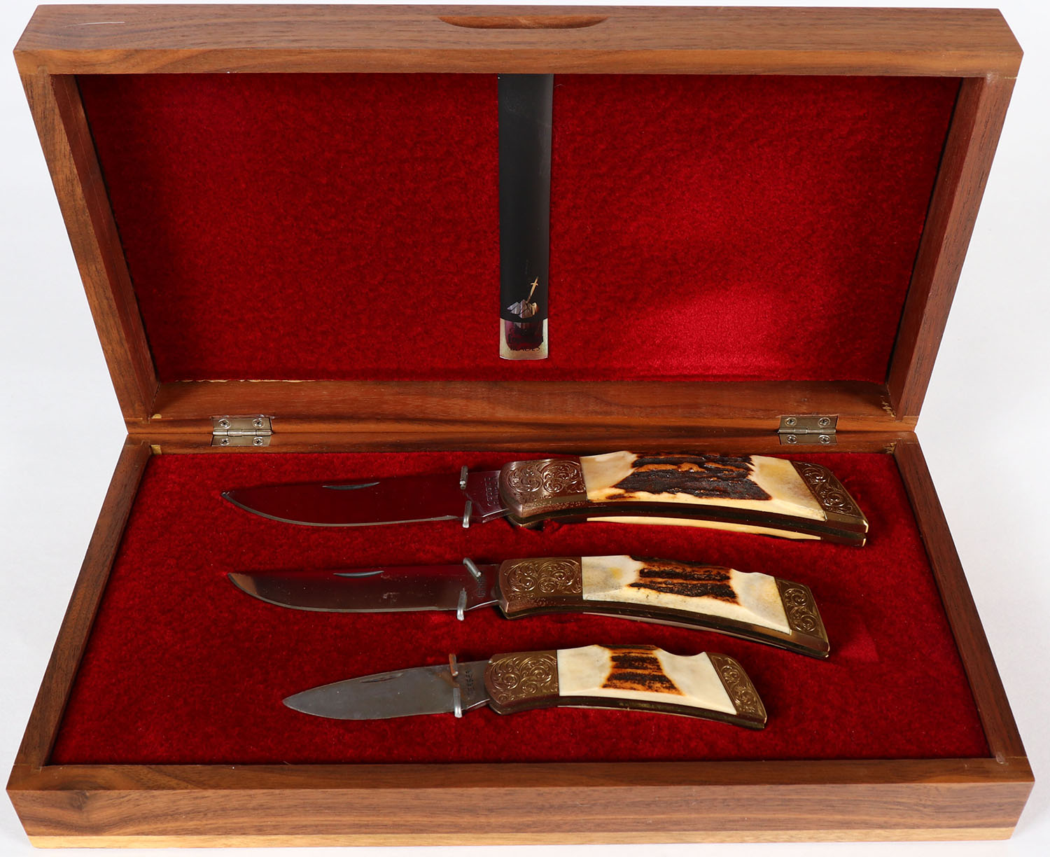 RARE! Gerber, Presidents Collection, 221/1000, in wood display box, 3 knives. Grade: MINT - Value: 150 to 400