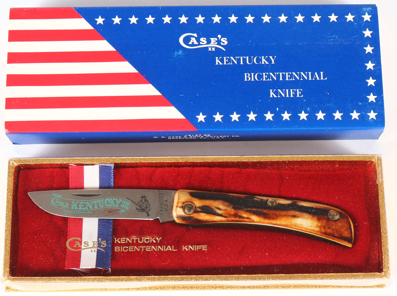 RARE! Case Kentucky Bicentennial knife, wood handle 3'' blade, has display box. Grade: Excellent - Value: 20 to 60