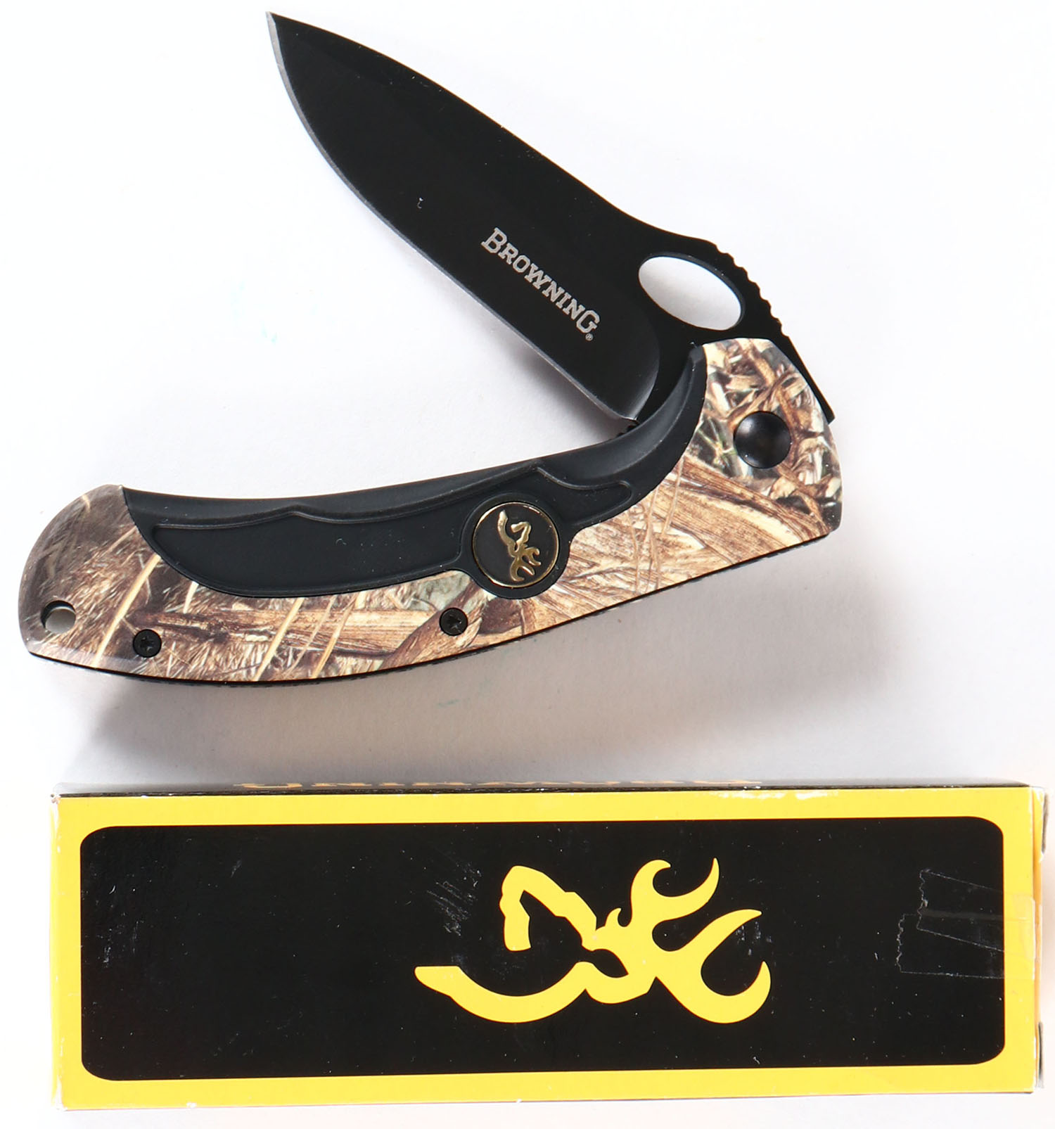 Browning folding blade, has sheath. Grade: Excellent - Value: 10 to 50