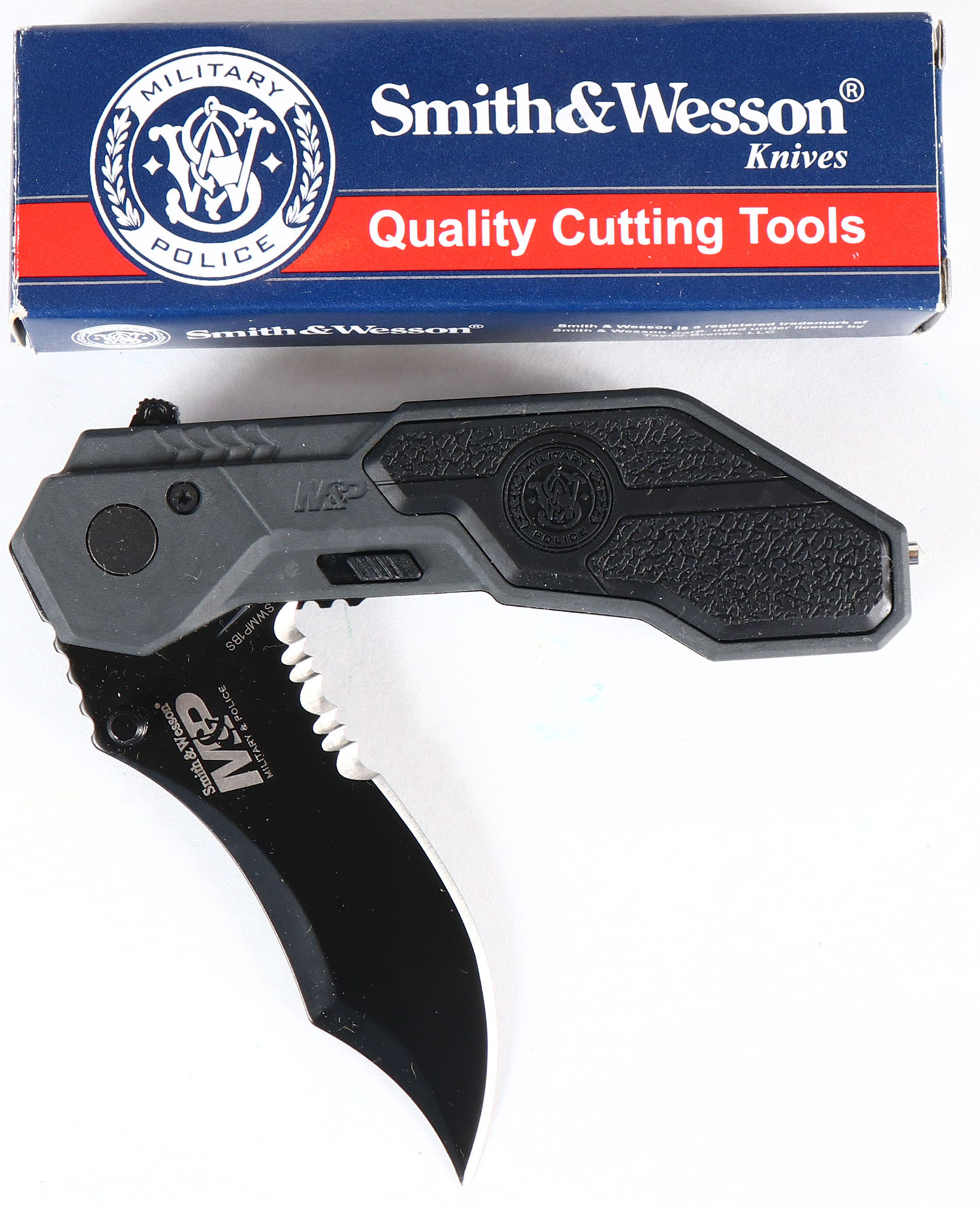 S&W folding blade, has sheath. Grade: Excellent - Value: 10 to 50