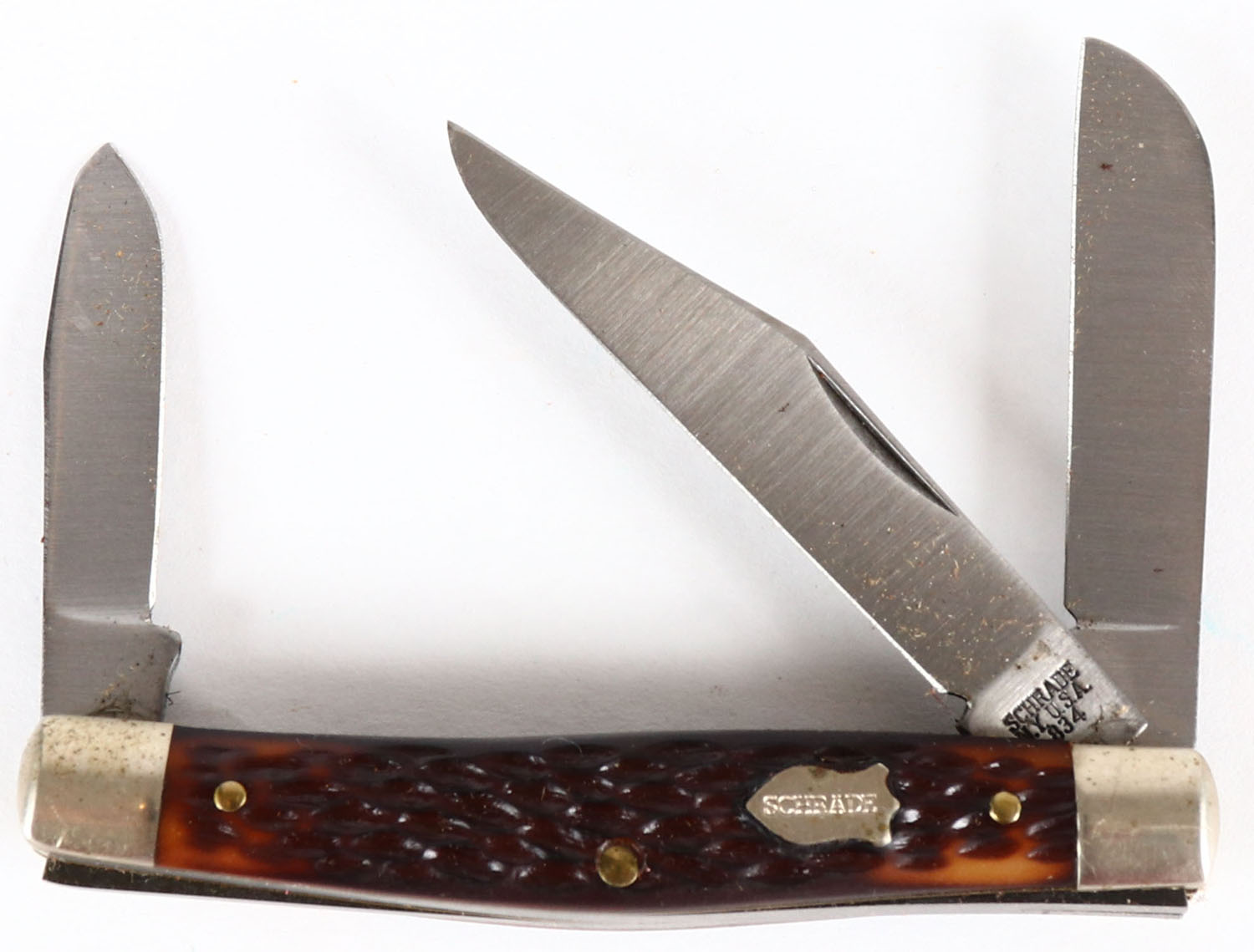 Schrade folding knife, 3 blades, 2 1/2'' longest blade, solid and clean. Grade: Excellent ++ - Value: 10 to 50