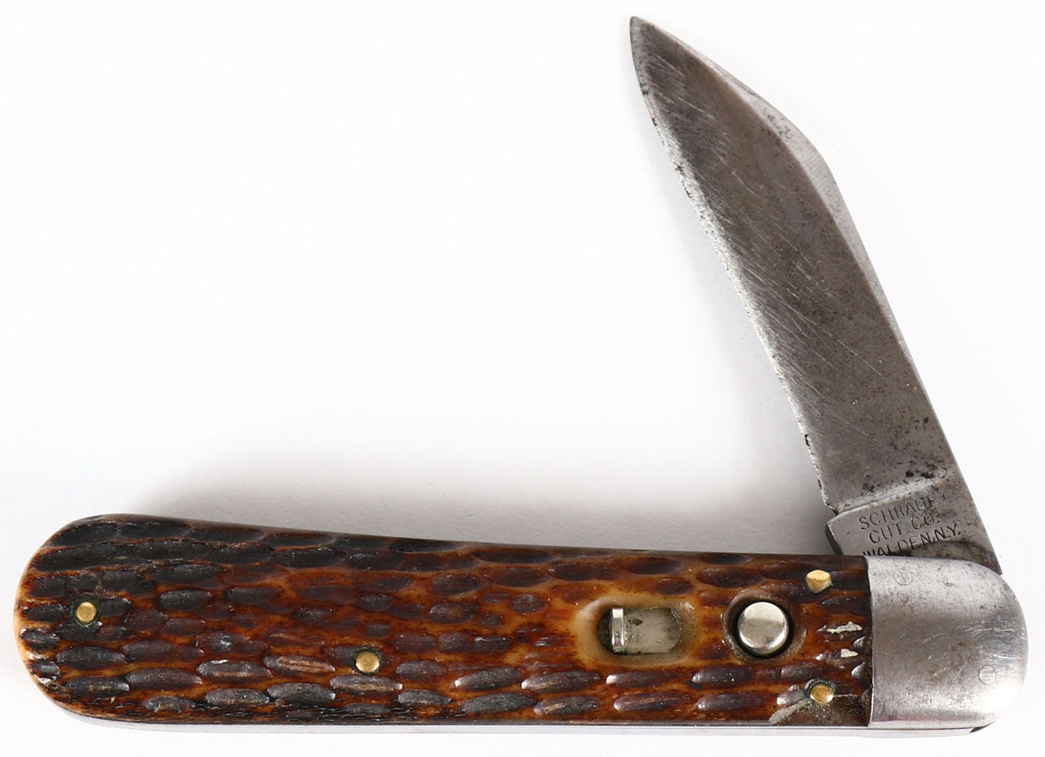 RARE! Schrade quick release folding knife, 2 1/2'' blade, some age soiling. Grade: Excellent - Value: 50 to 200