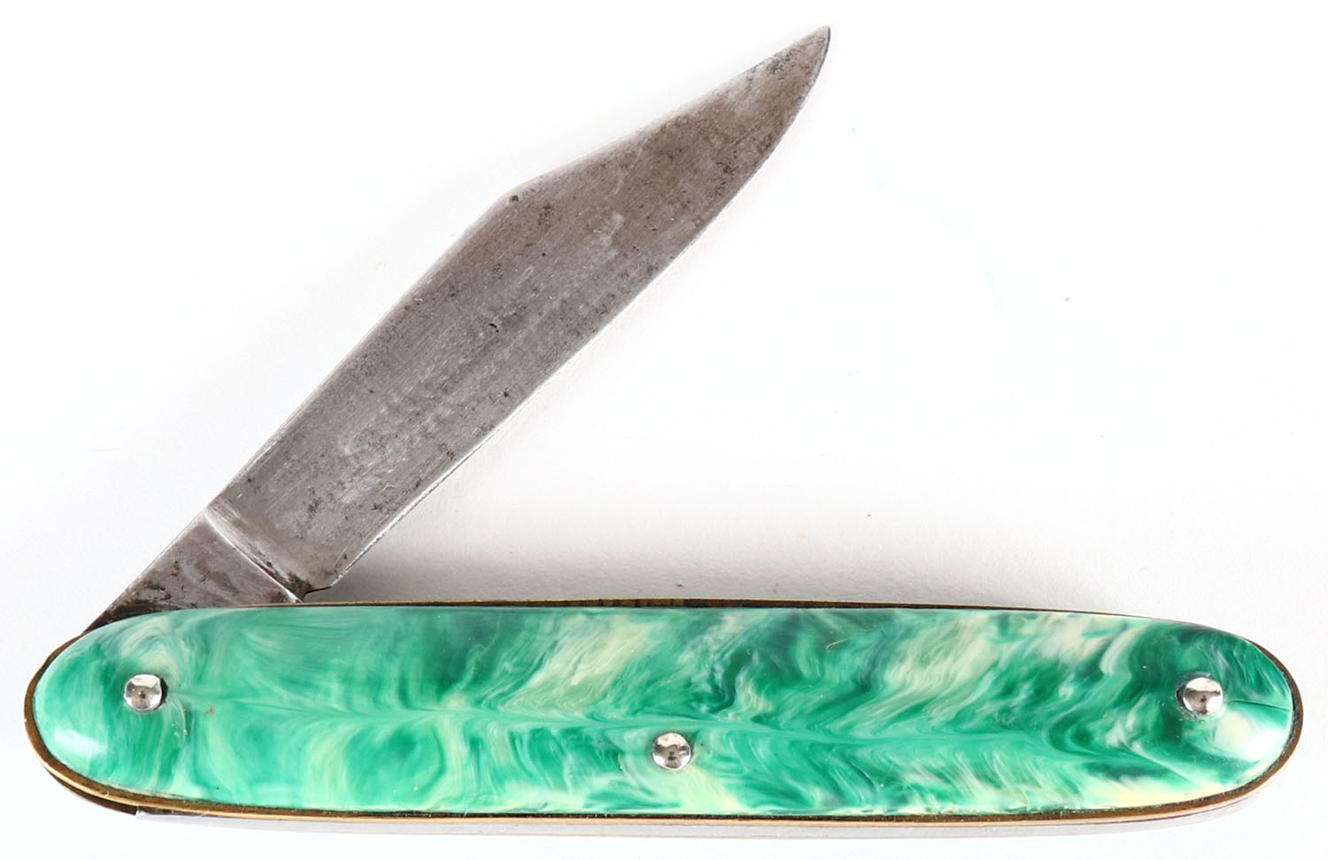 RARE! Edgemaster quick release folding knife, 2 1/2'' blade, some age soiling. Grade: Excellent - Value: 20 to 80