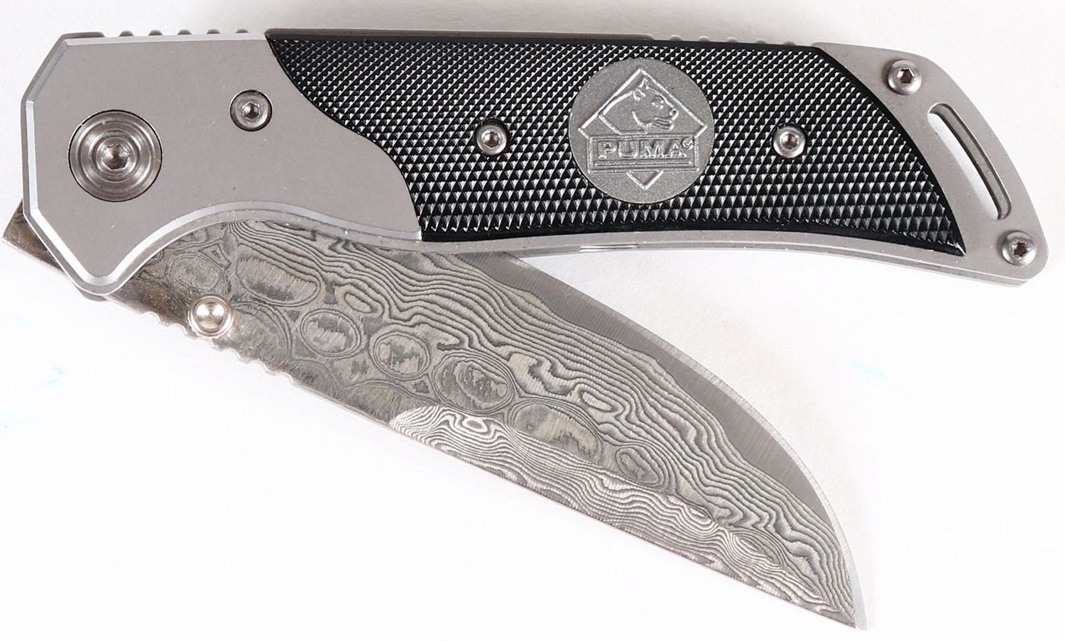Puma folding blade knife, damascus blade, 4'' blade. Grade: Excellent ++ - Value: 40 to 150