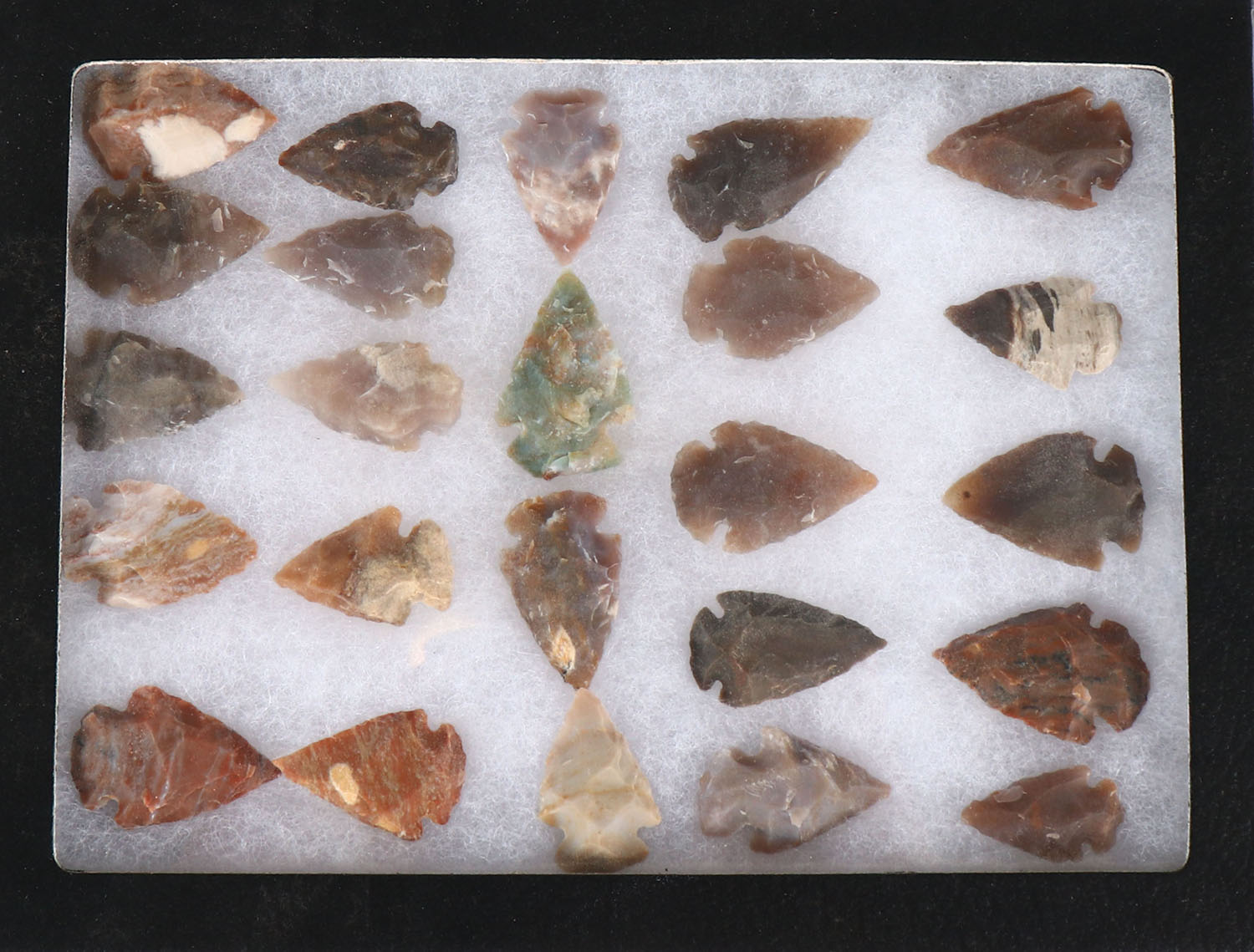 Lot of 24 flint arrowheads, all solid and clean. Grade: Excellent ++ - Value: 50 to 250
