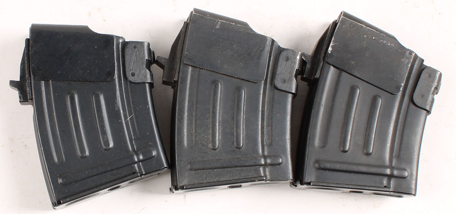 Lot of three, 5Rd. 7.62x39mm AK mags, all marked ''CHINA'' on the base plate. Grade: Excellent - Value: 20 to 60