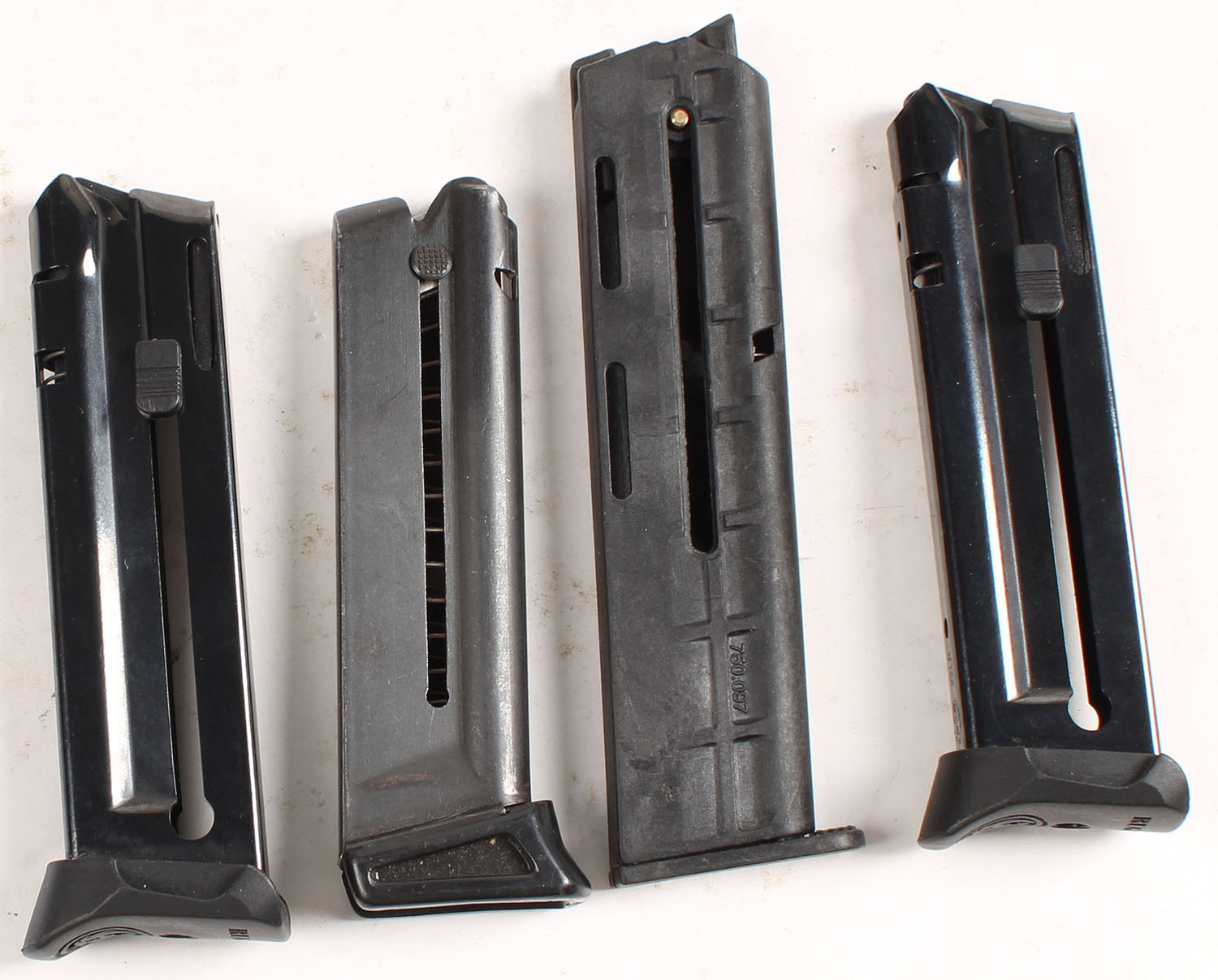 Lot of four, .22LR pistol mags, one marked Chiappa, two marked Ruger, one unmarked. Grade: Excellent - Value: 20 to 60